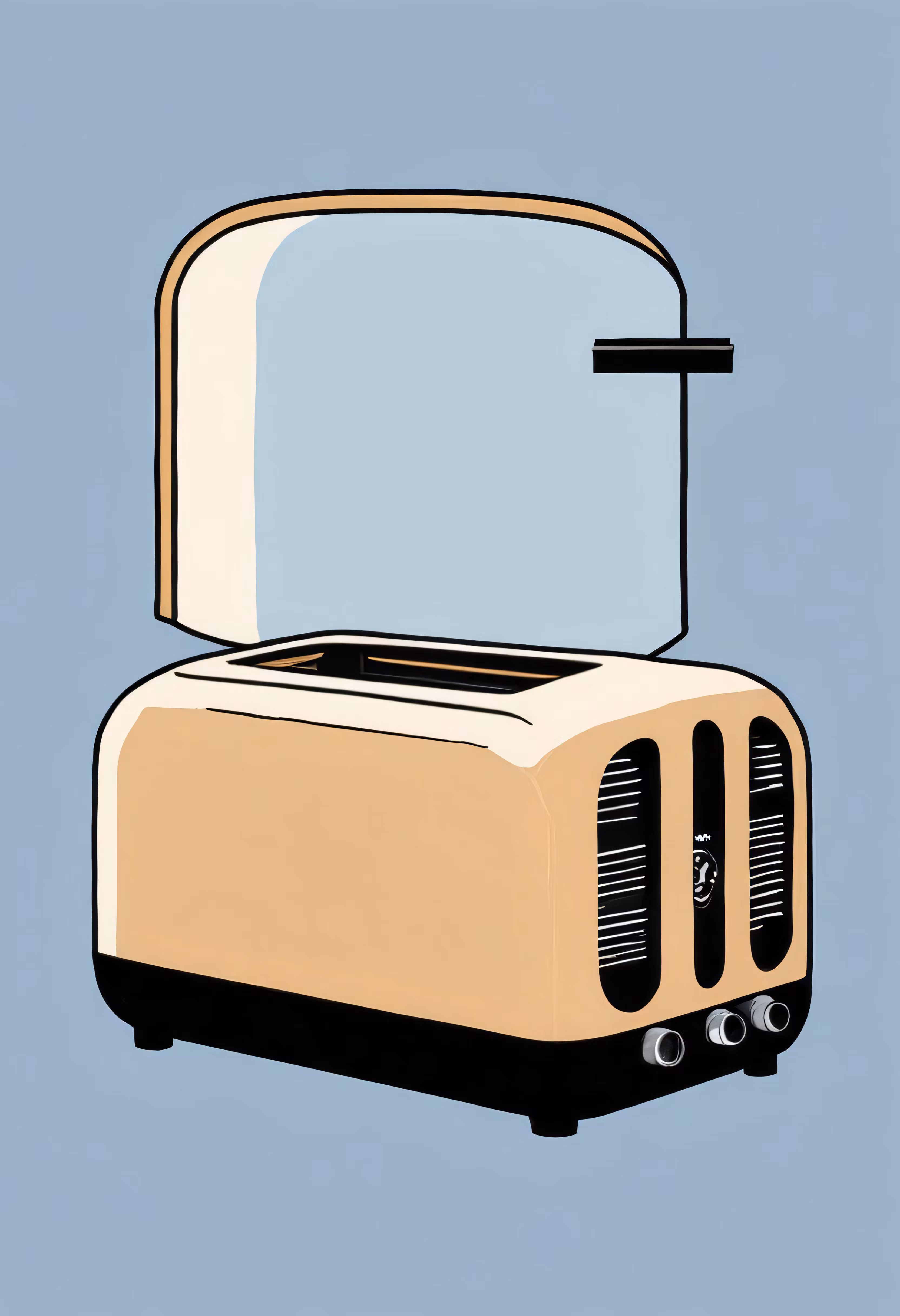High resolution picture, free to use, the official logo for the 50 /a small toaster on a blue background
