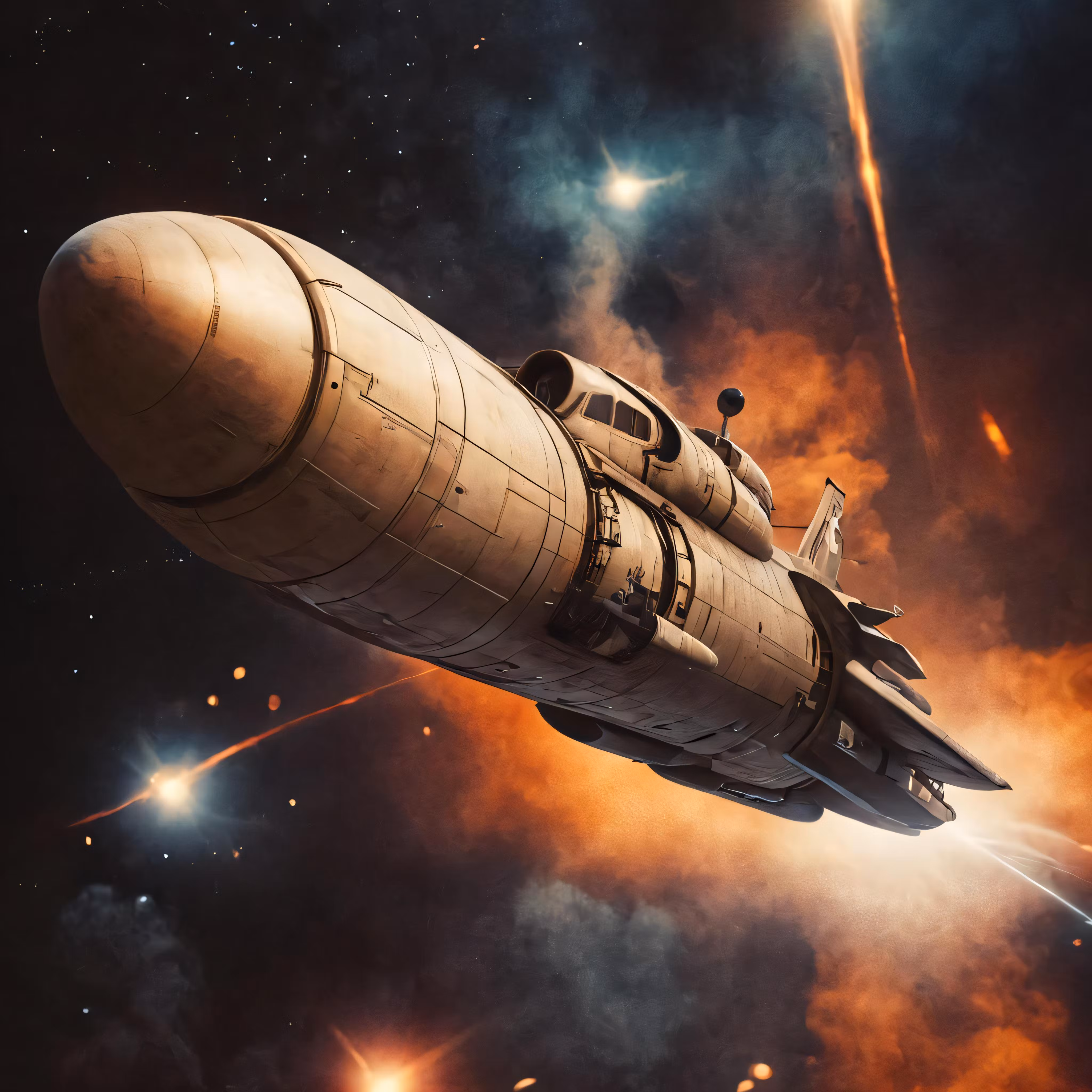 High resolution picture, free to use, the official logo for the 50 /a space ship flying through a dark sky