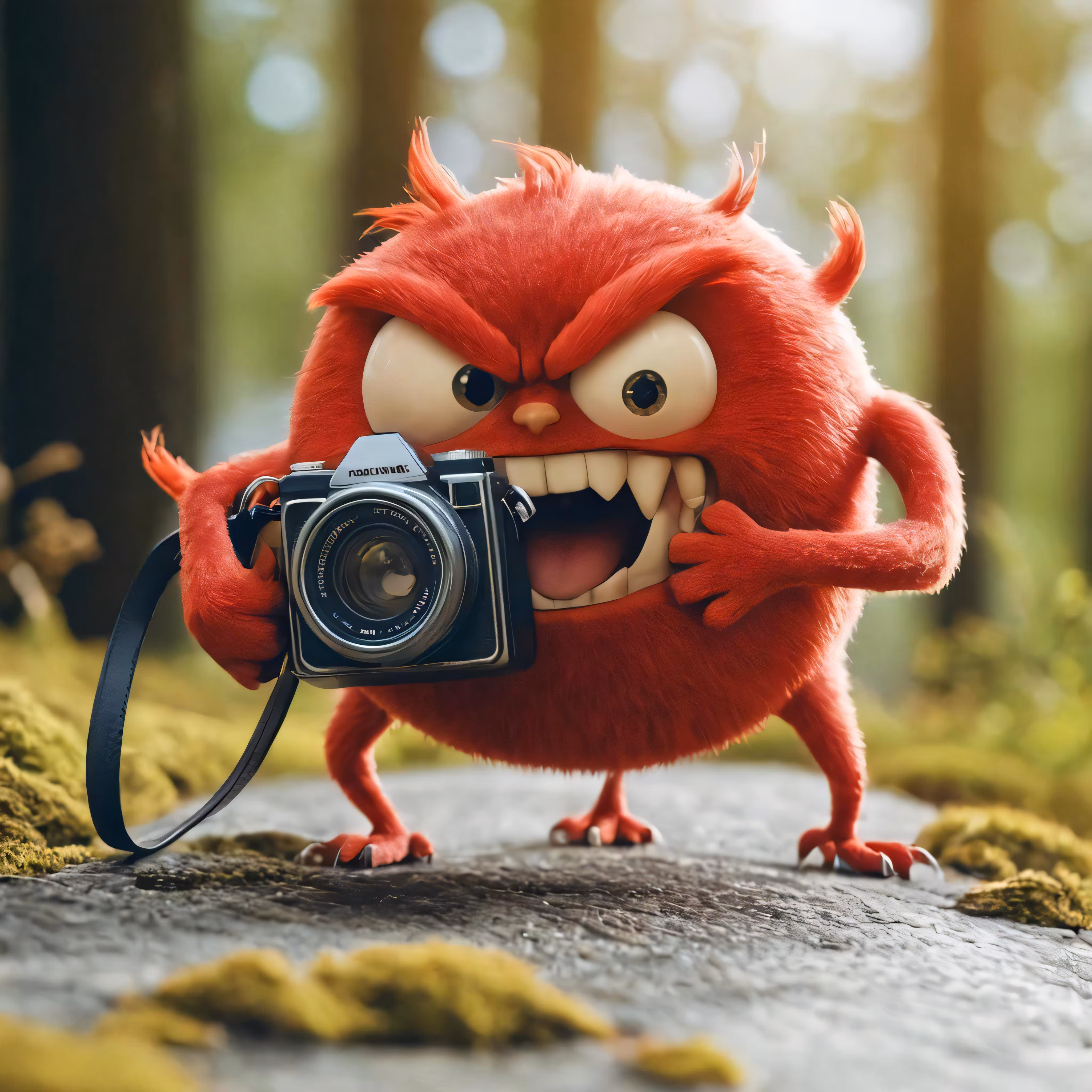 High resolution picture, free to use, the official logo for the 50 /a stuffed animal holding a camera near a forest