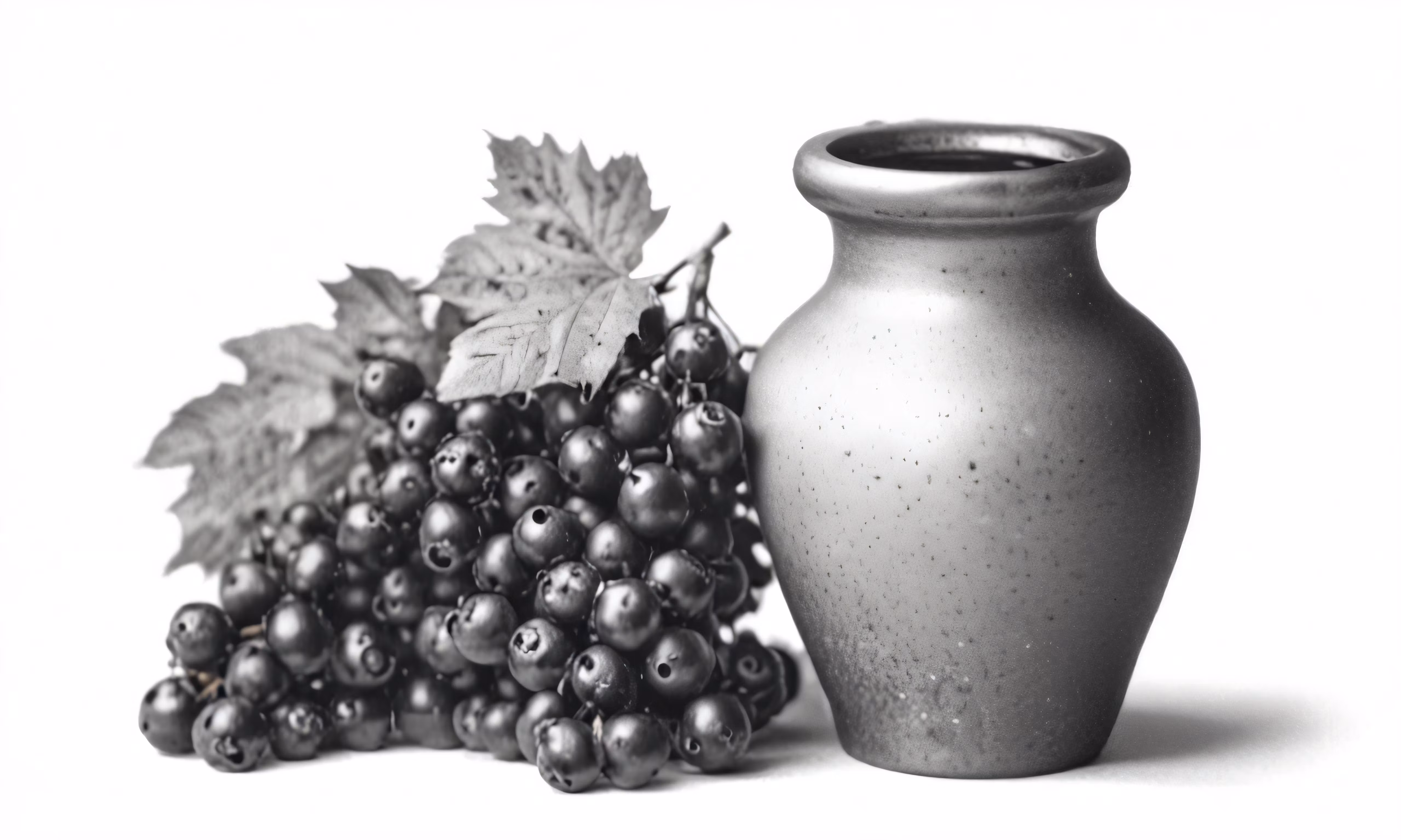 High resolution picture, free to use, the official logo for the 50 /a white vase and some black grapes