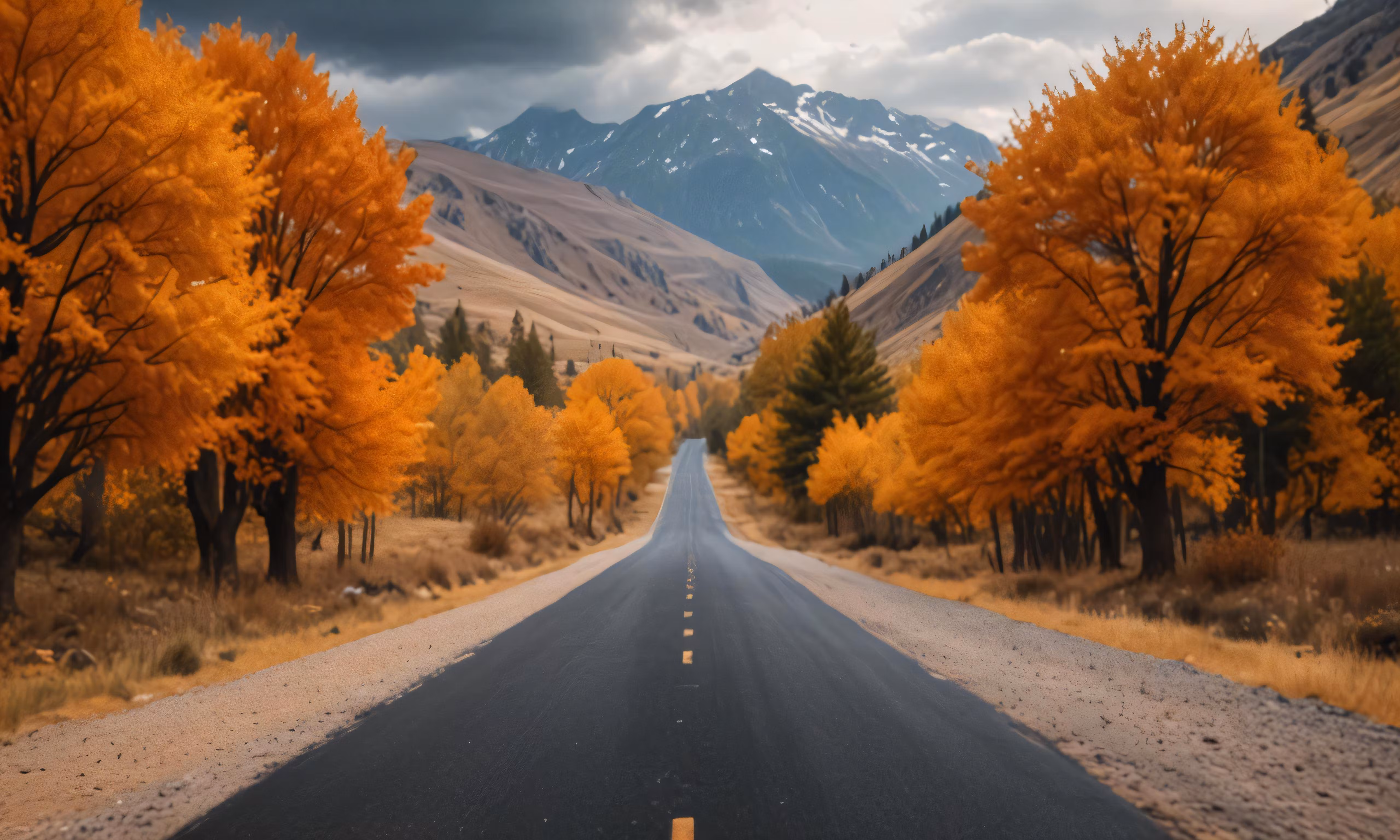 High resolution picture, free to use, the official logo for the 50 /a wide open road surrounded by mountains and trees
