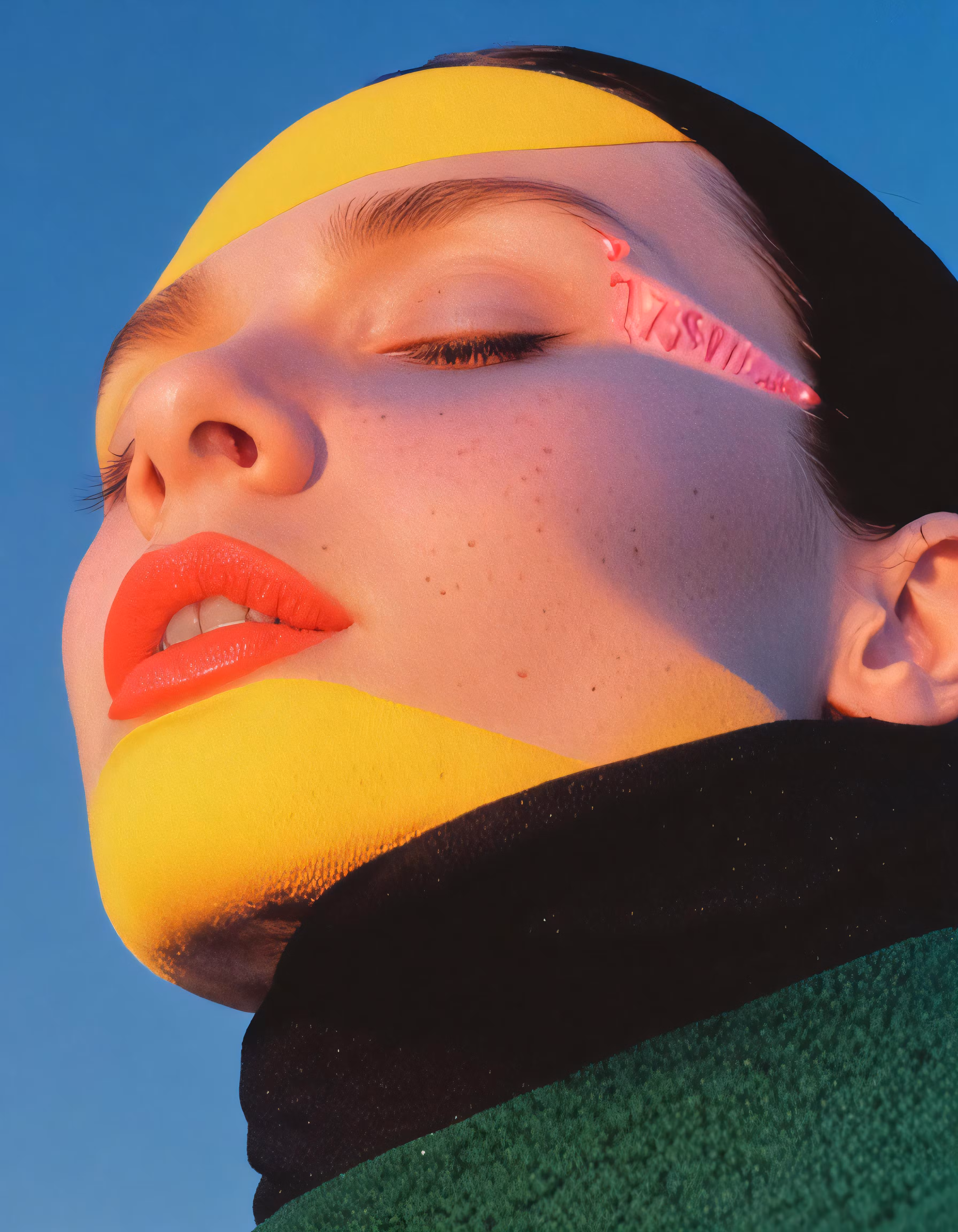 High resolution picture, free to use, the official logo for the 50 /a woman has a pink highlighter on her cheek