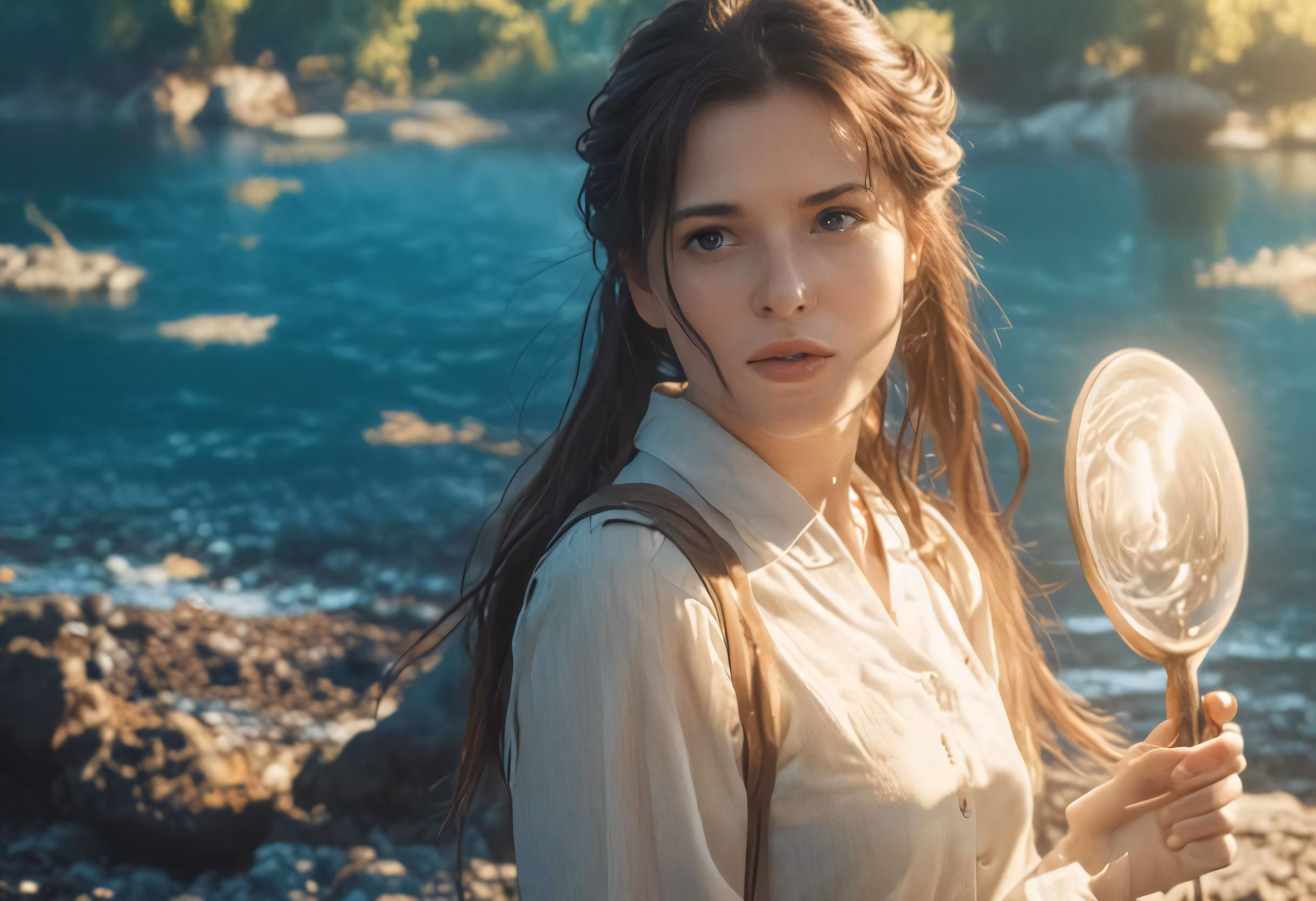 High resolution picture, free to use, the official logo for the 50 /a woman holding up a round mirror with her hand