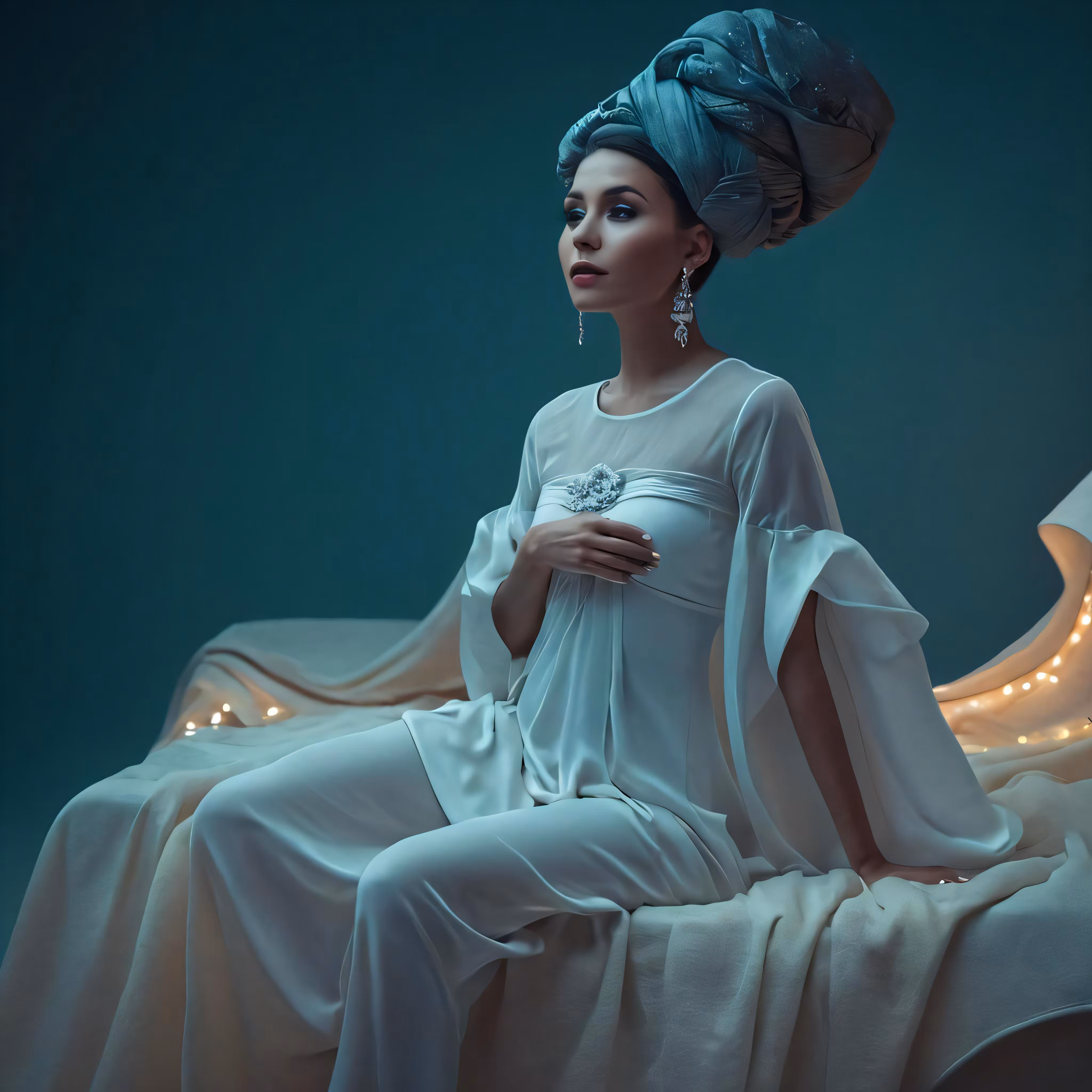 High resolution picture, free to use, the official logo for the 50 /a woman in a white gown sits on a bed