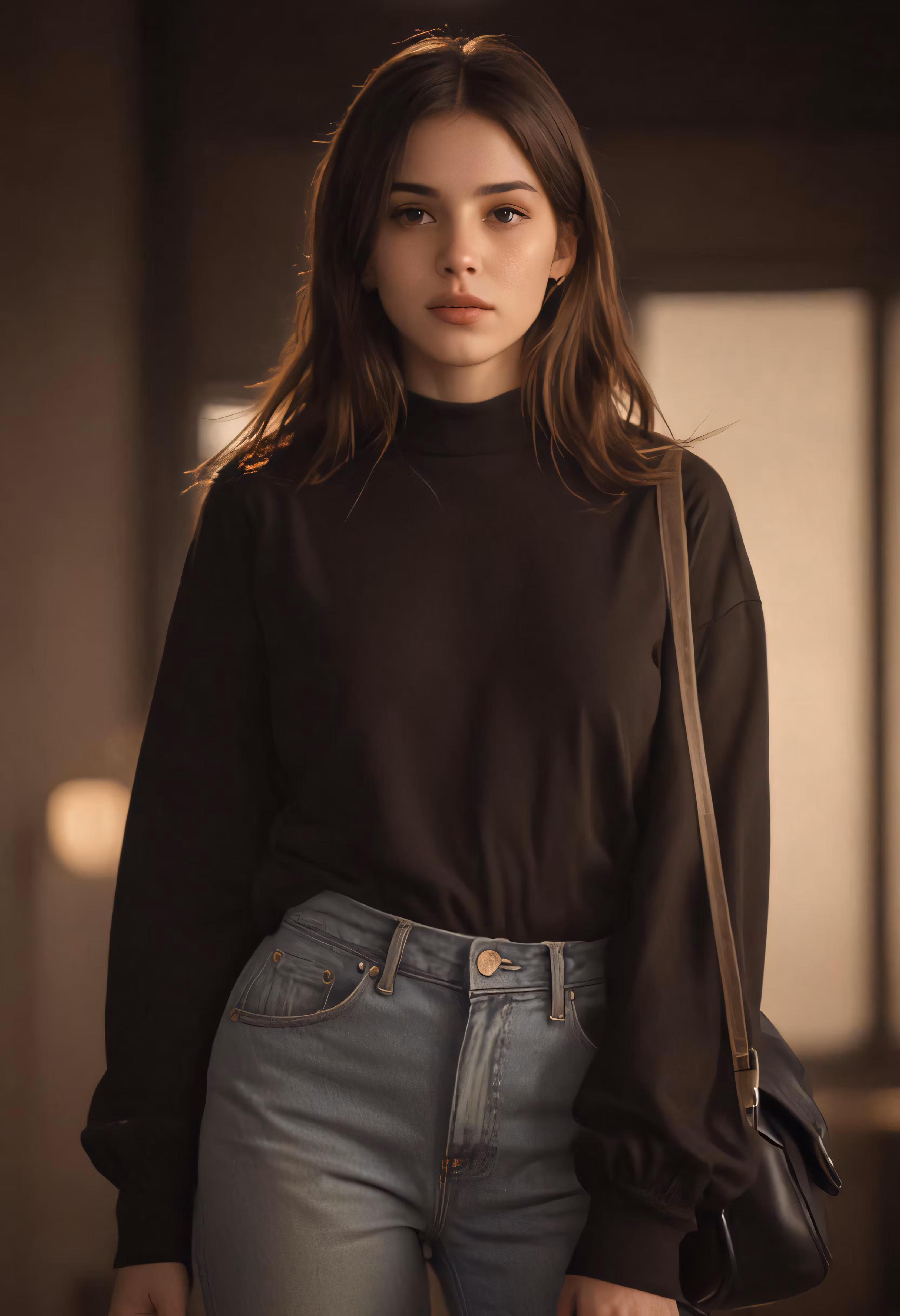 High resolution picture, free to use, the official logo for the 50 /a woman in black top and jeans posing for a photo