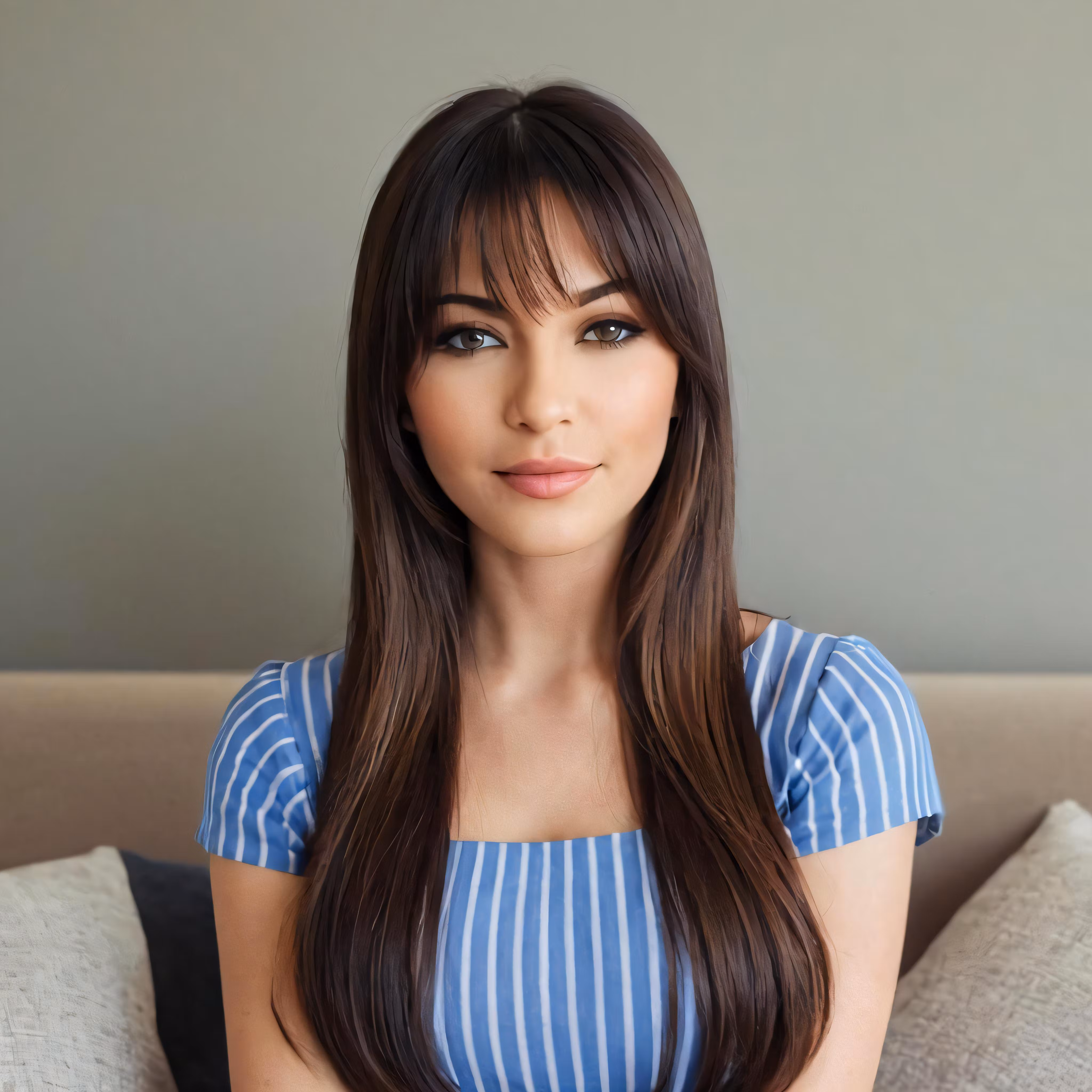 High resolution picture, free to use, the official logo for the 50 /a woman is posing with her legs crossed and a smile