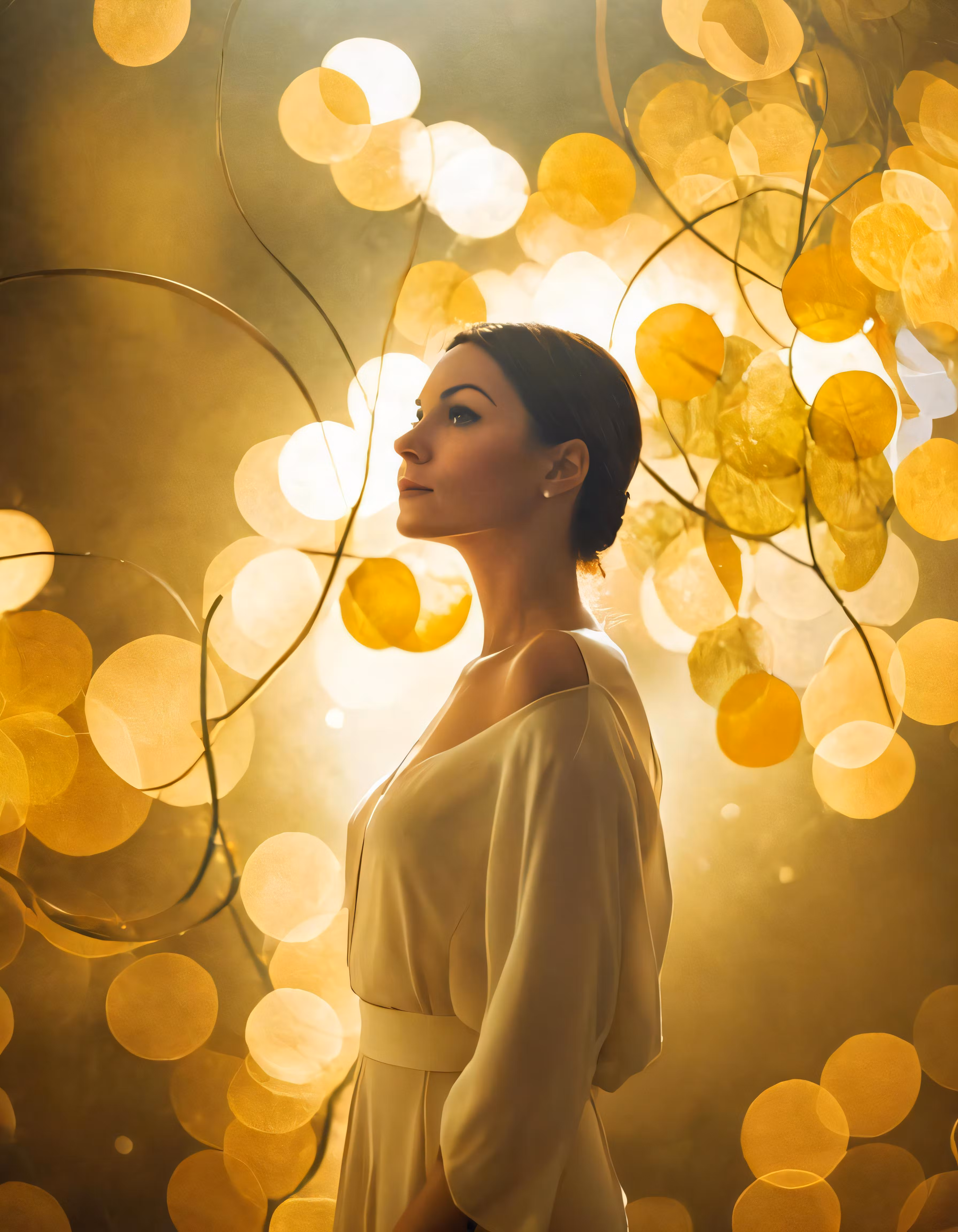 High resolution picture, free to use, the official logo for the 50 /a woman is standing under some lights
