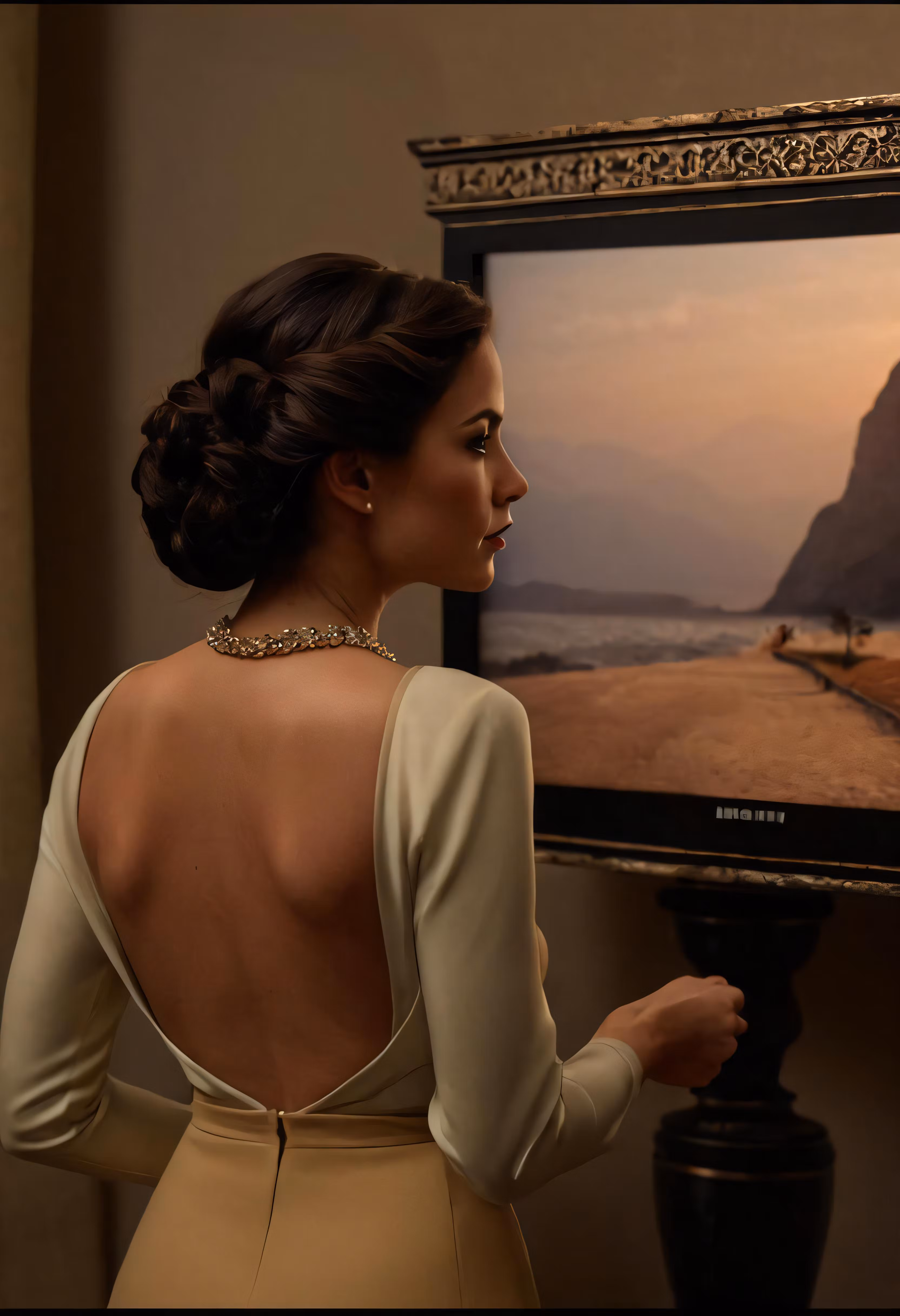 High resolution picture, free to use, the official logo for the 50 /a woman looking at a picture of a sunset