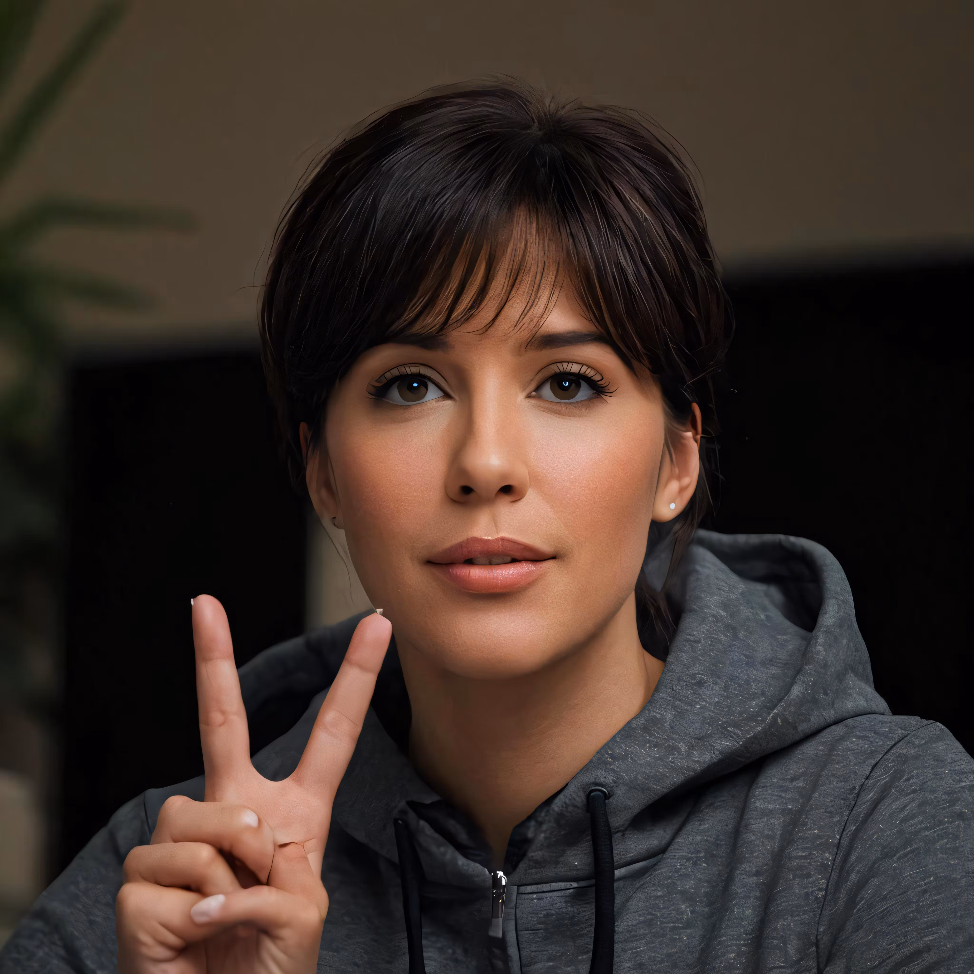 High resolution picture, free to use, the official logo for the 50 /a woman making the v sign in front of her