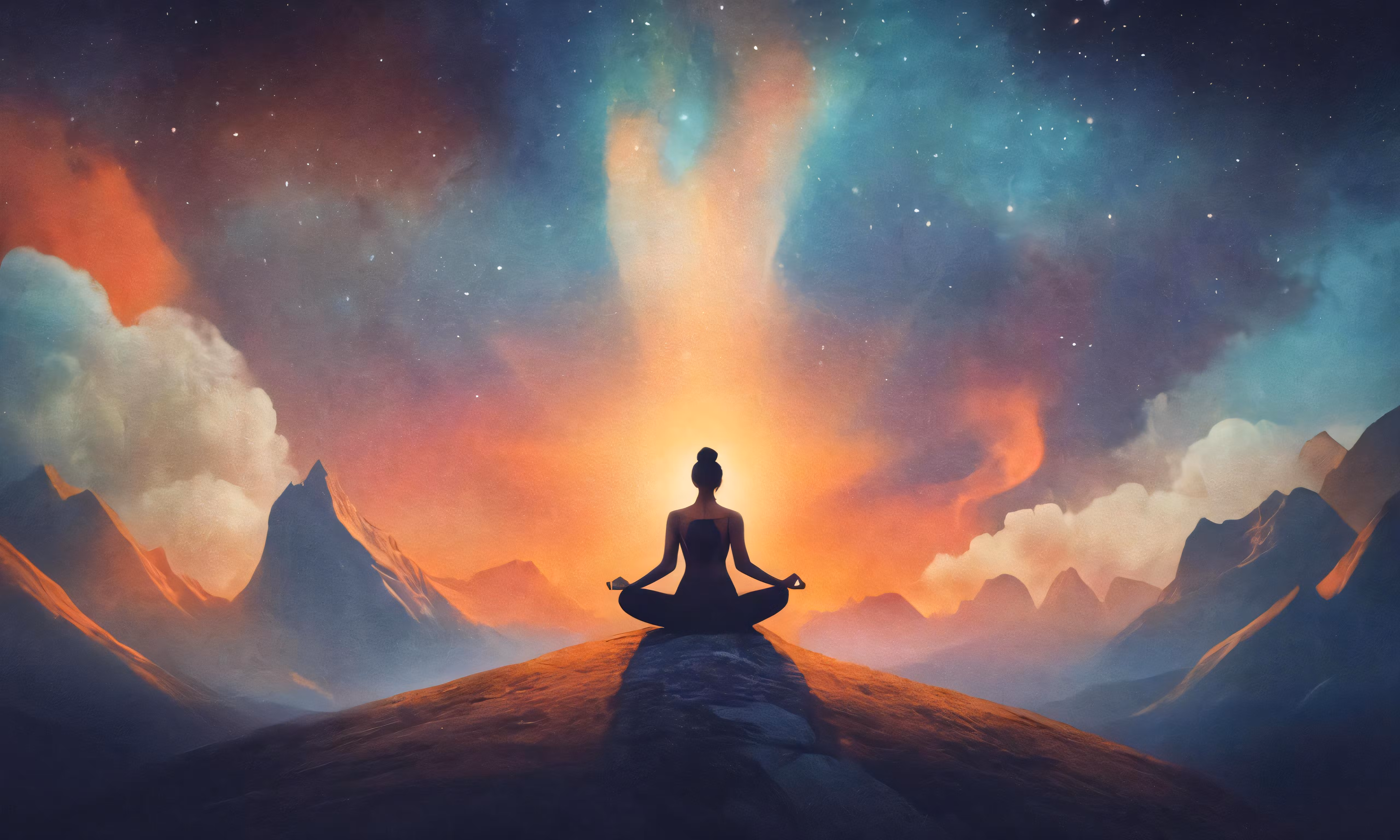 High resolution picture, free to use, the official logo for the 50 /a woman sitting in a yoga position, looking at the stars and the night sky