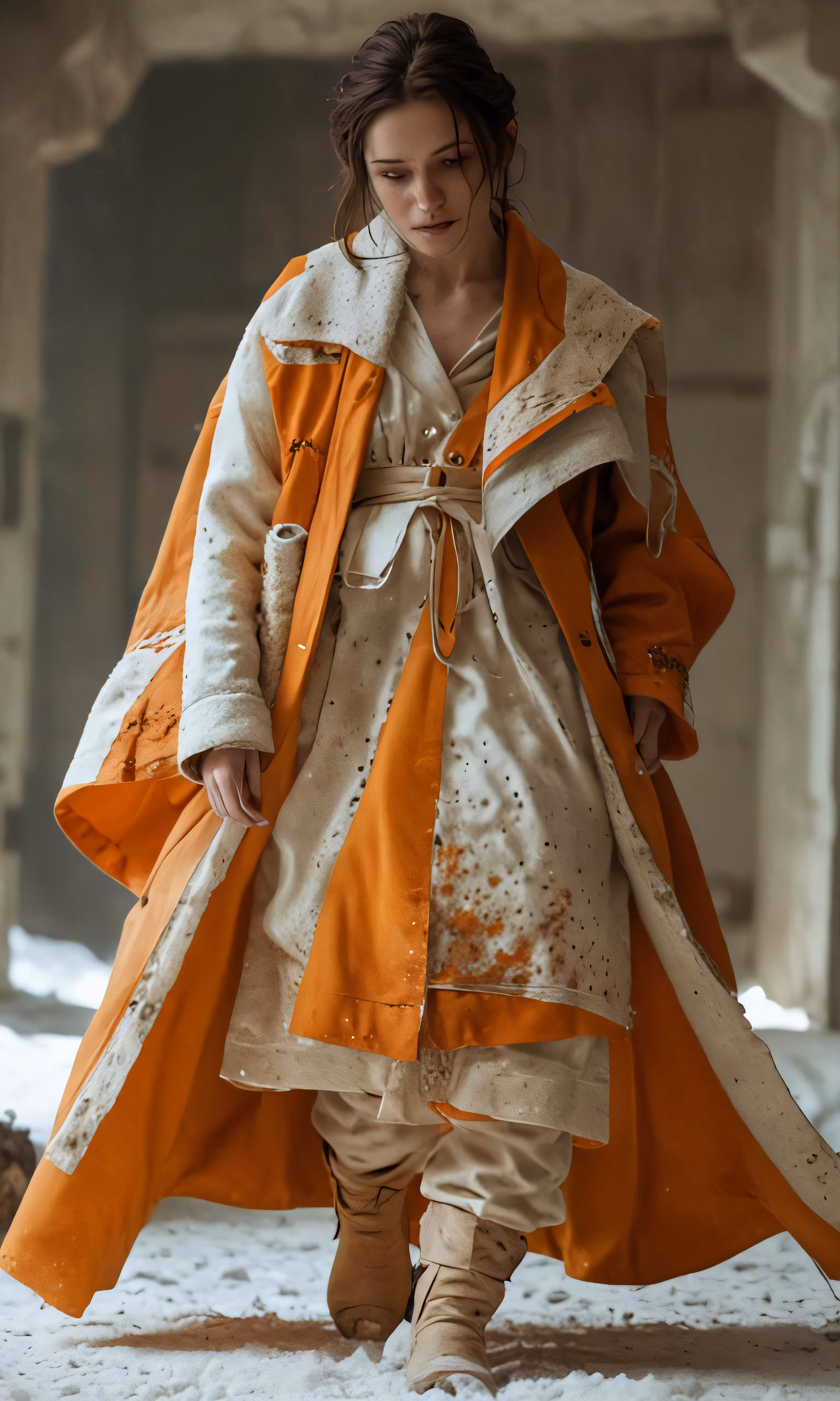 High resolution picture, free to use, the official logo for the 50 /a woman walking down a snowy street in a yellow coat