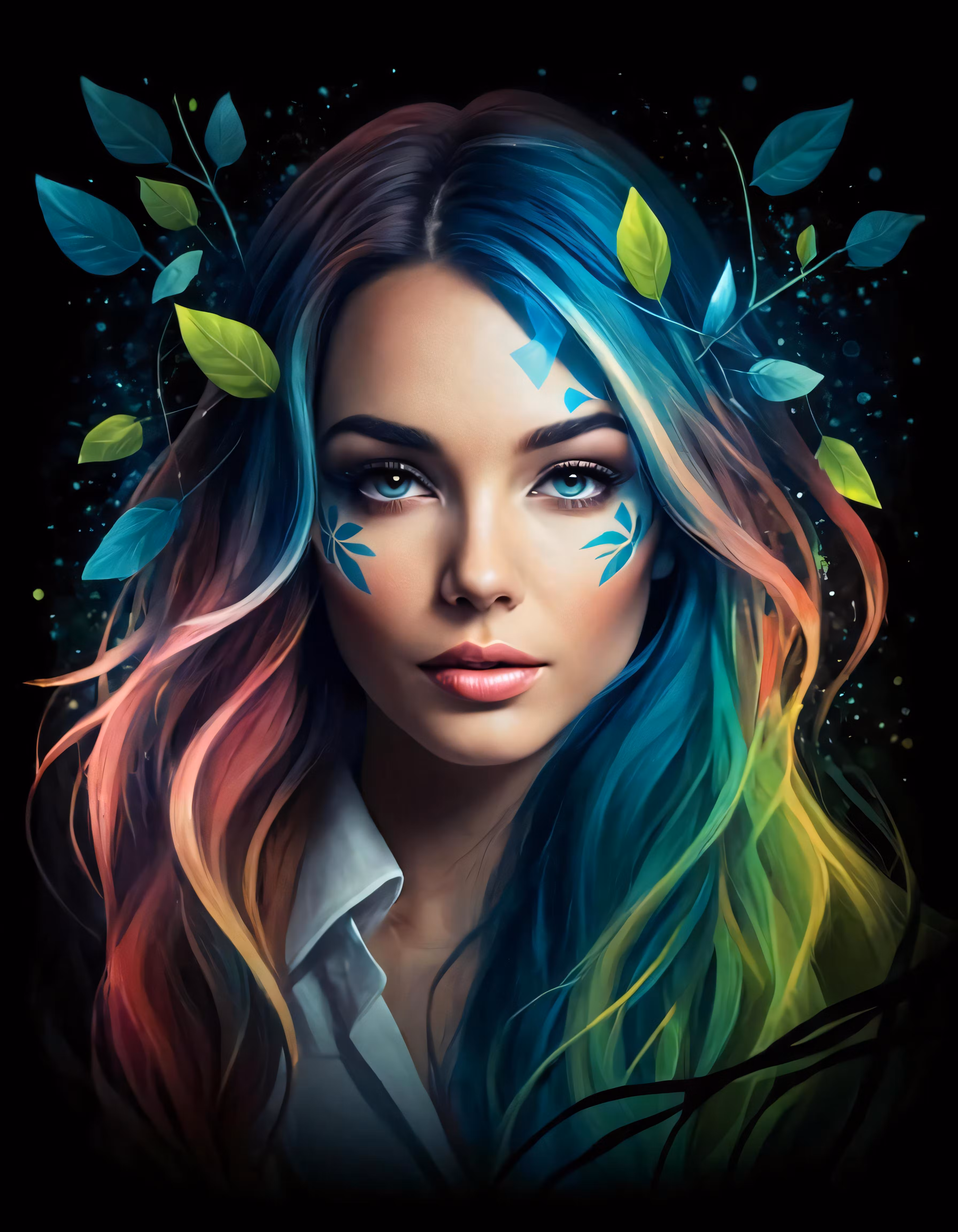 High resolution picture, free to use, the official logo for the 50 /a woman with blue hair and rainbow hair