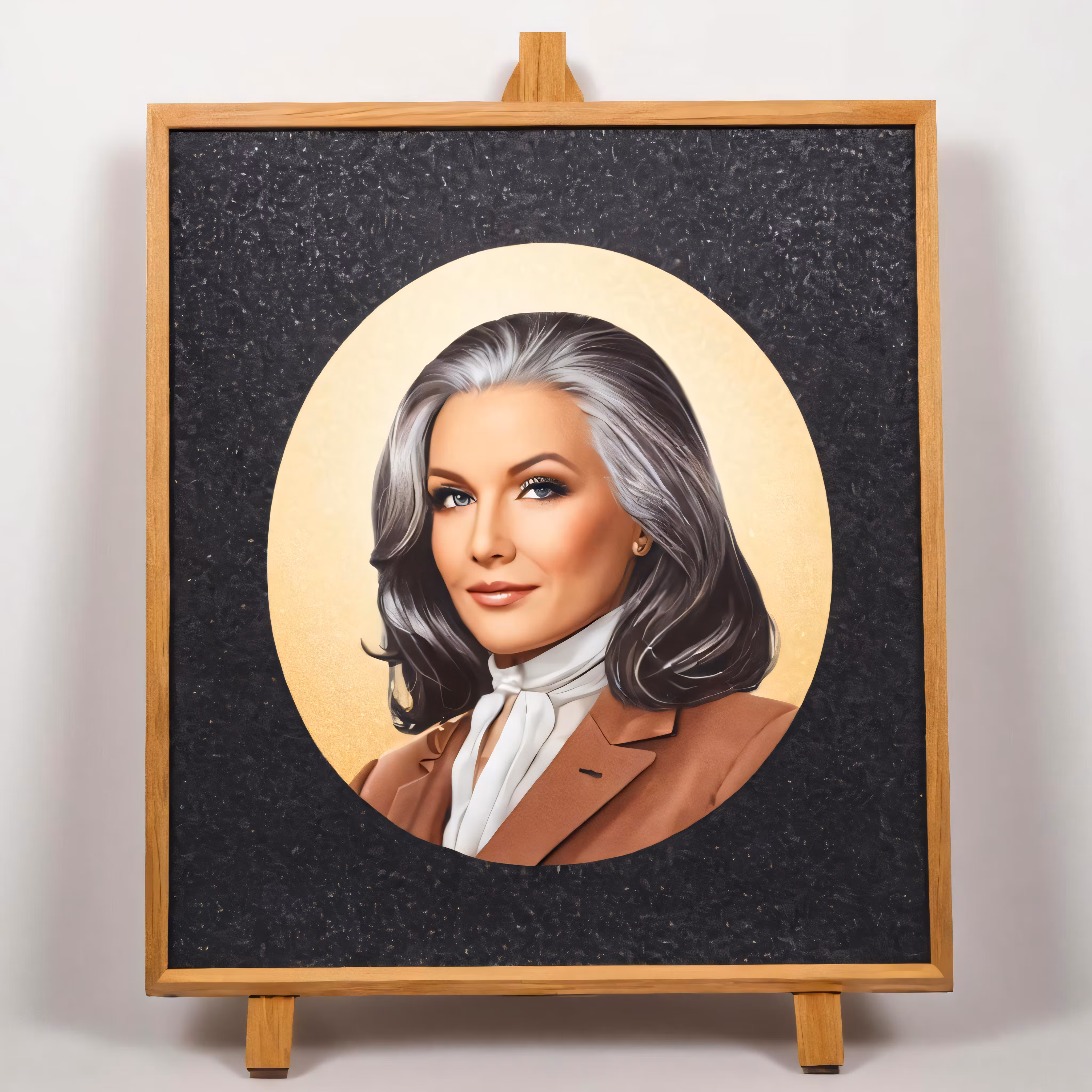 High resolution picture, free to use, the official logo for the 50 /a woman with grey hair, painted in oils