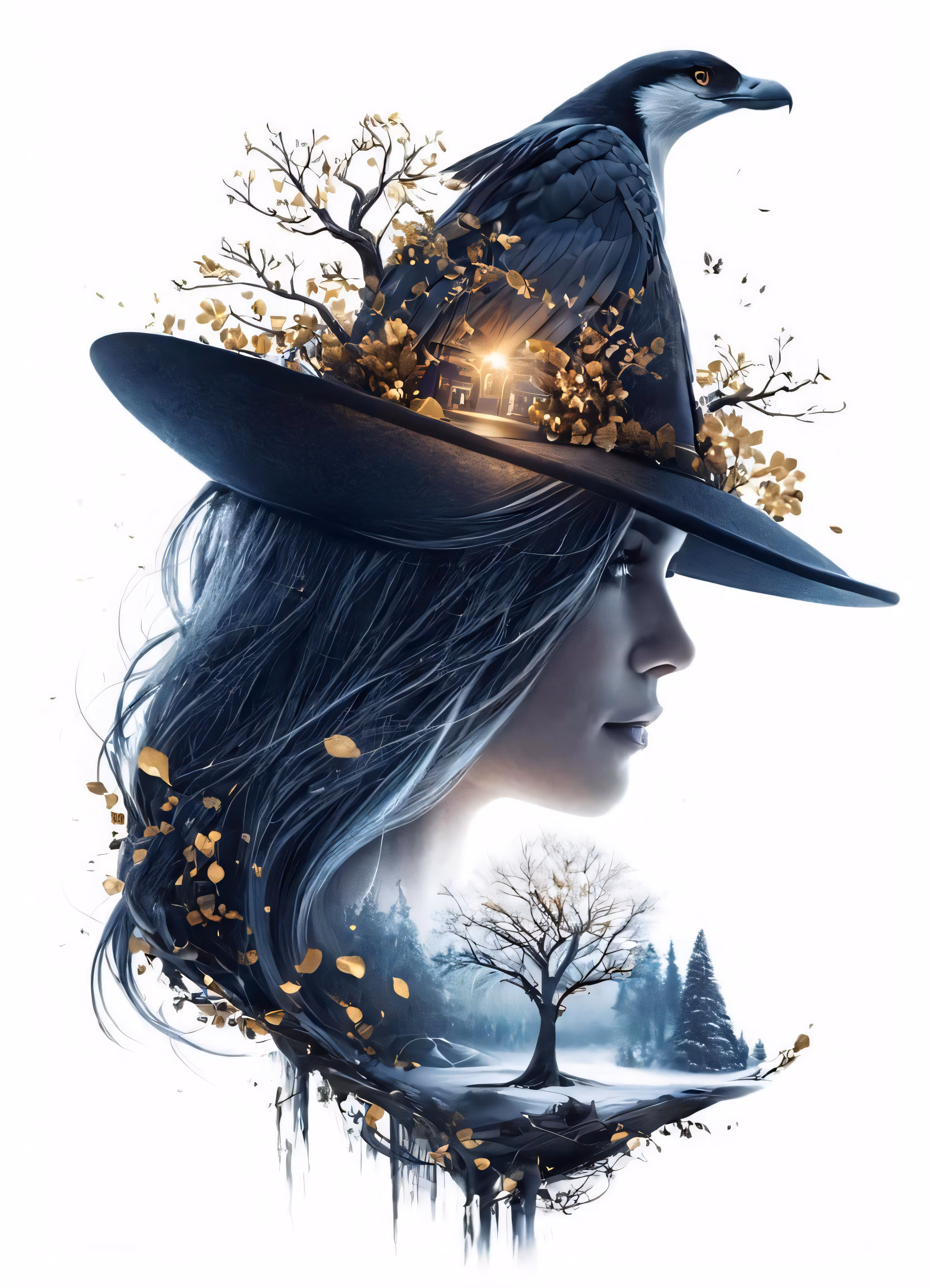 High resolution picture, free to use, the official logo for the 50 /a woman with her face wearing a witches hat
