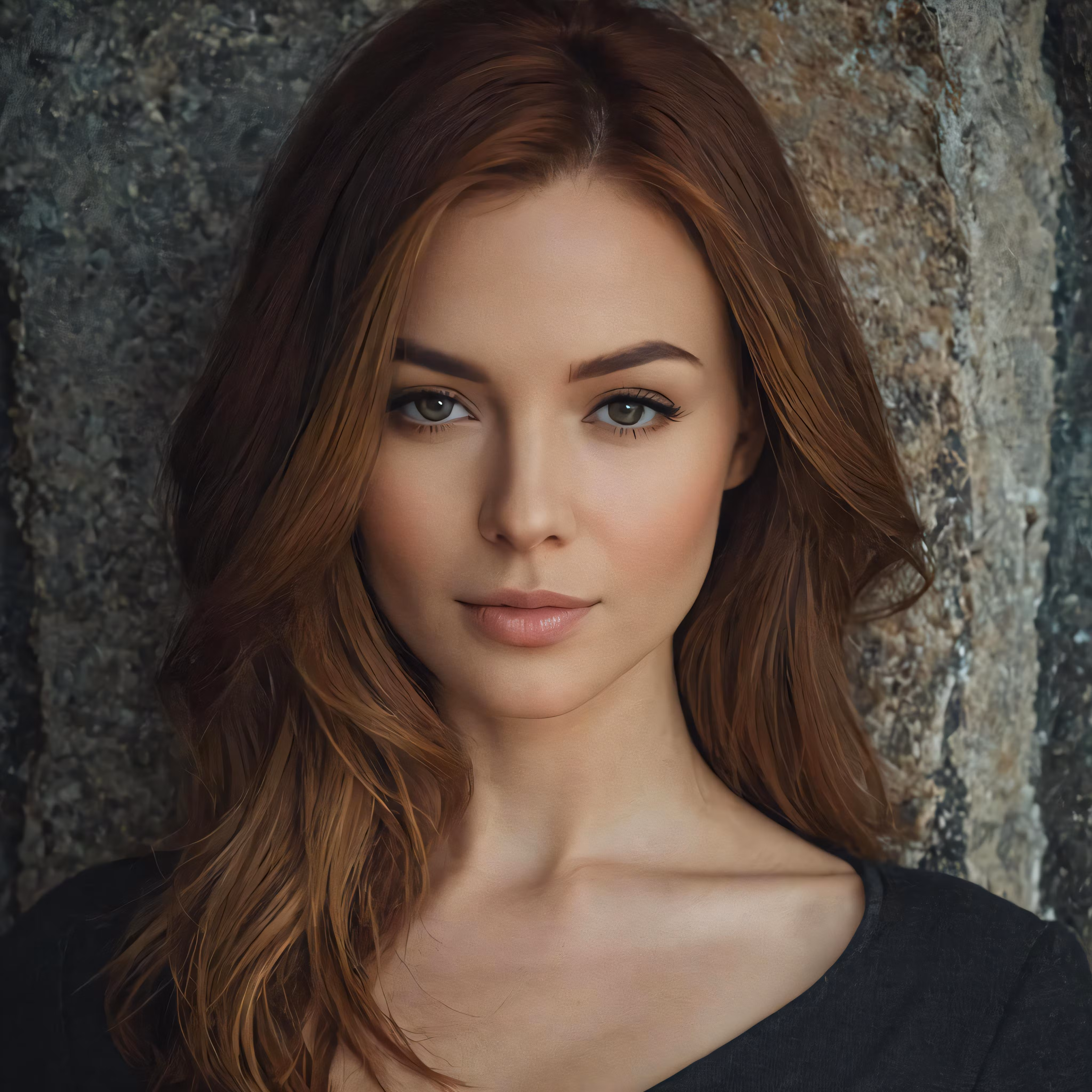 High resolution picture, free to use, the official logo for the 50 /a woman with red hair and blue eyes