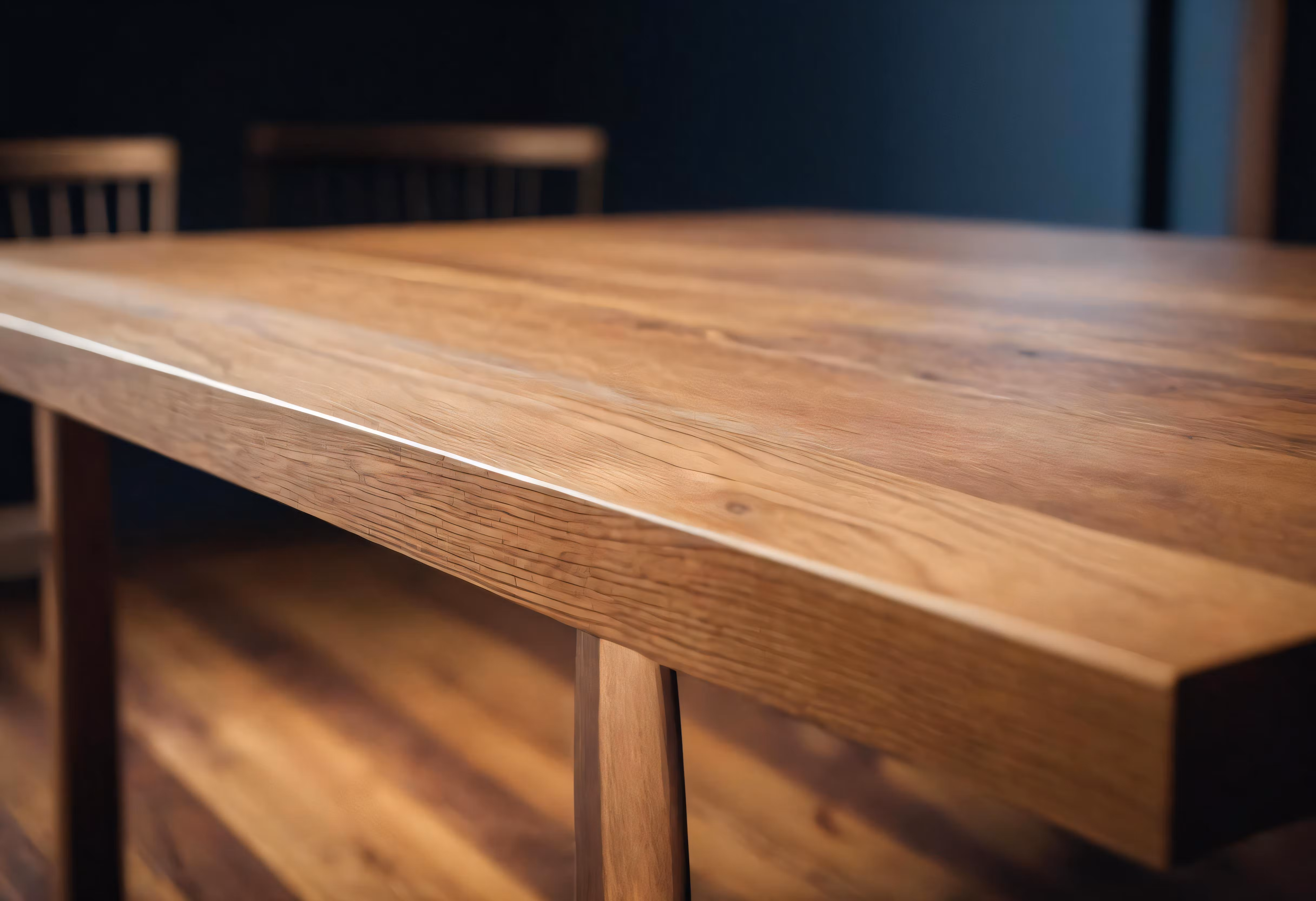 High resolution picture, free to use, the official logo for the 50 /a wooden table is shown with one single chair at the end