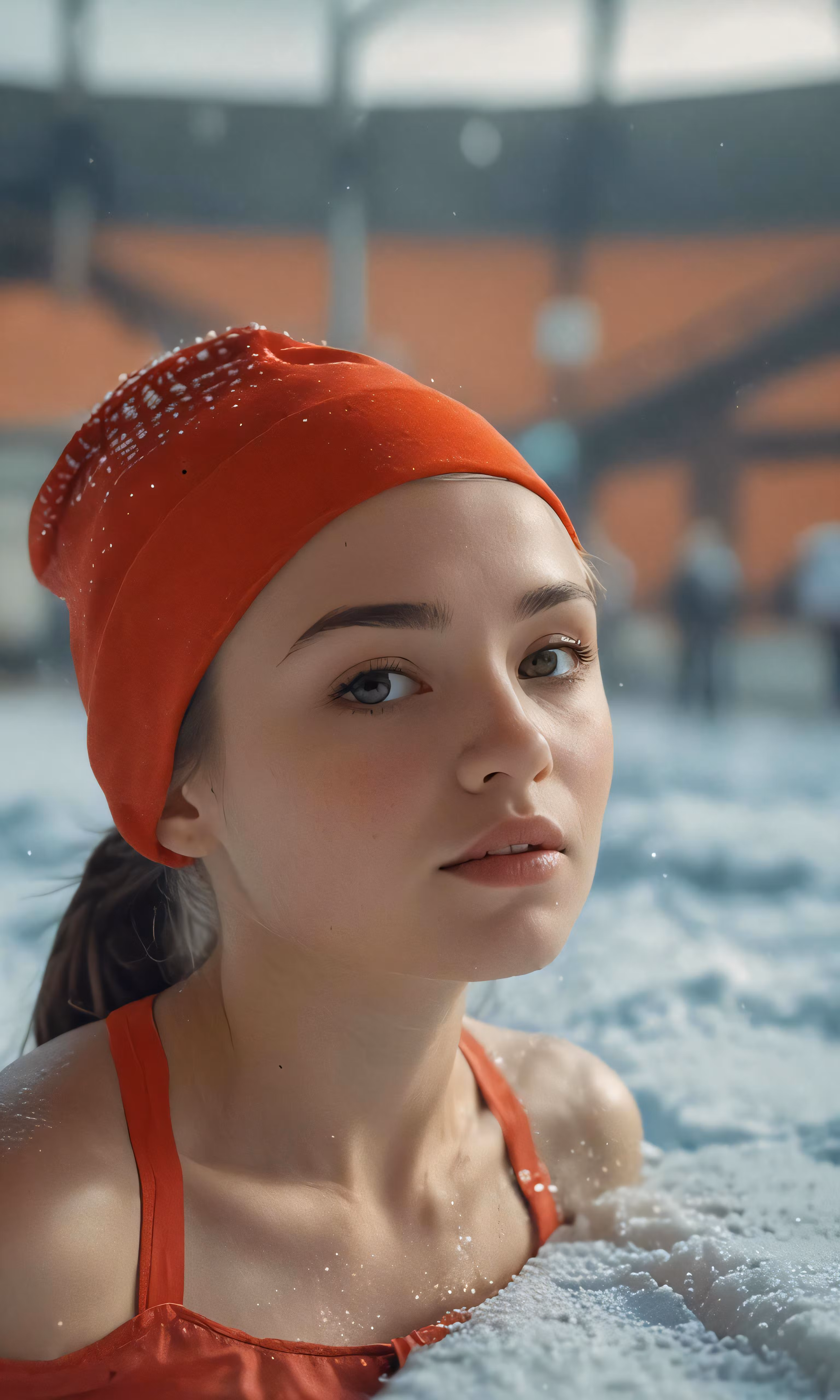 High resolution picture, free to use, the official logo for the 50 /a young lady is sitting in the water