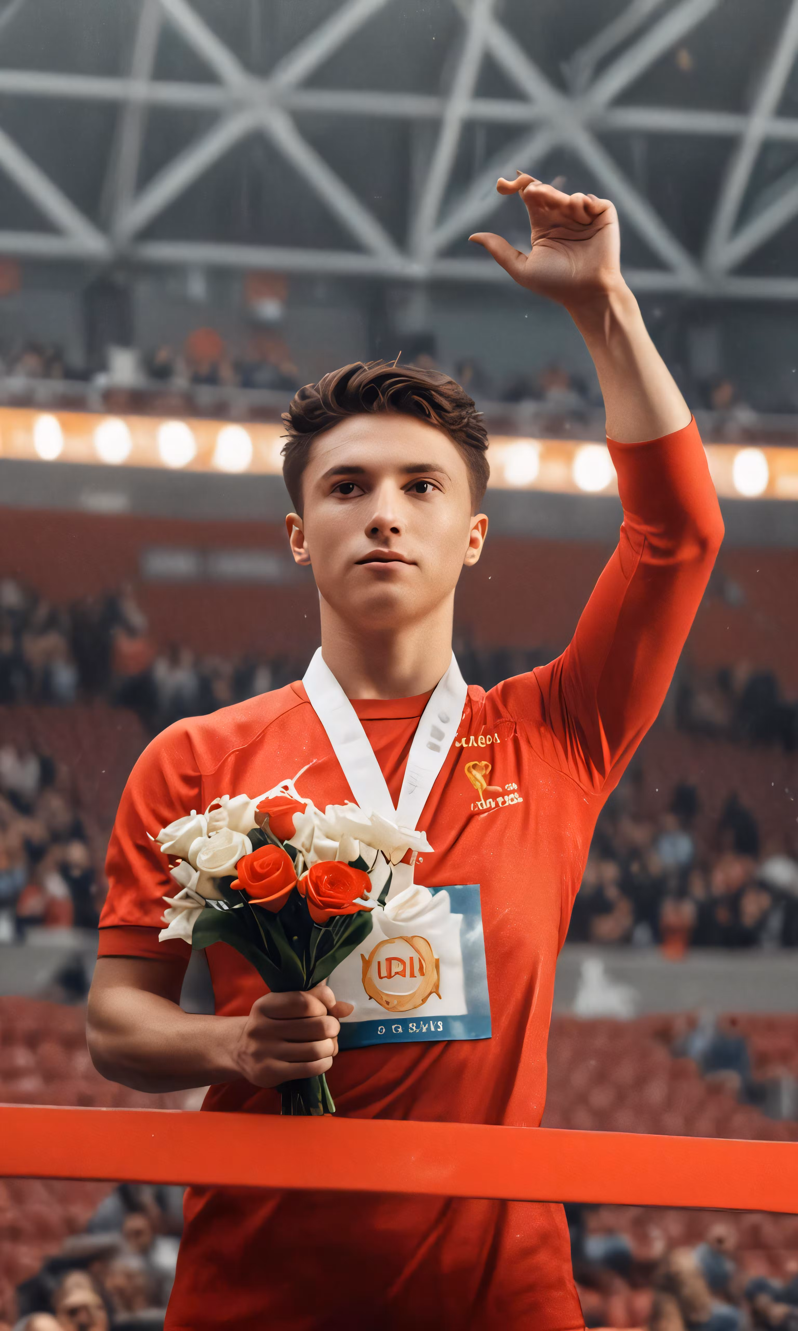 High resolution picture, free to use, the official logo for the 50 /a young man wearing a jersey raising his hand in victory