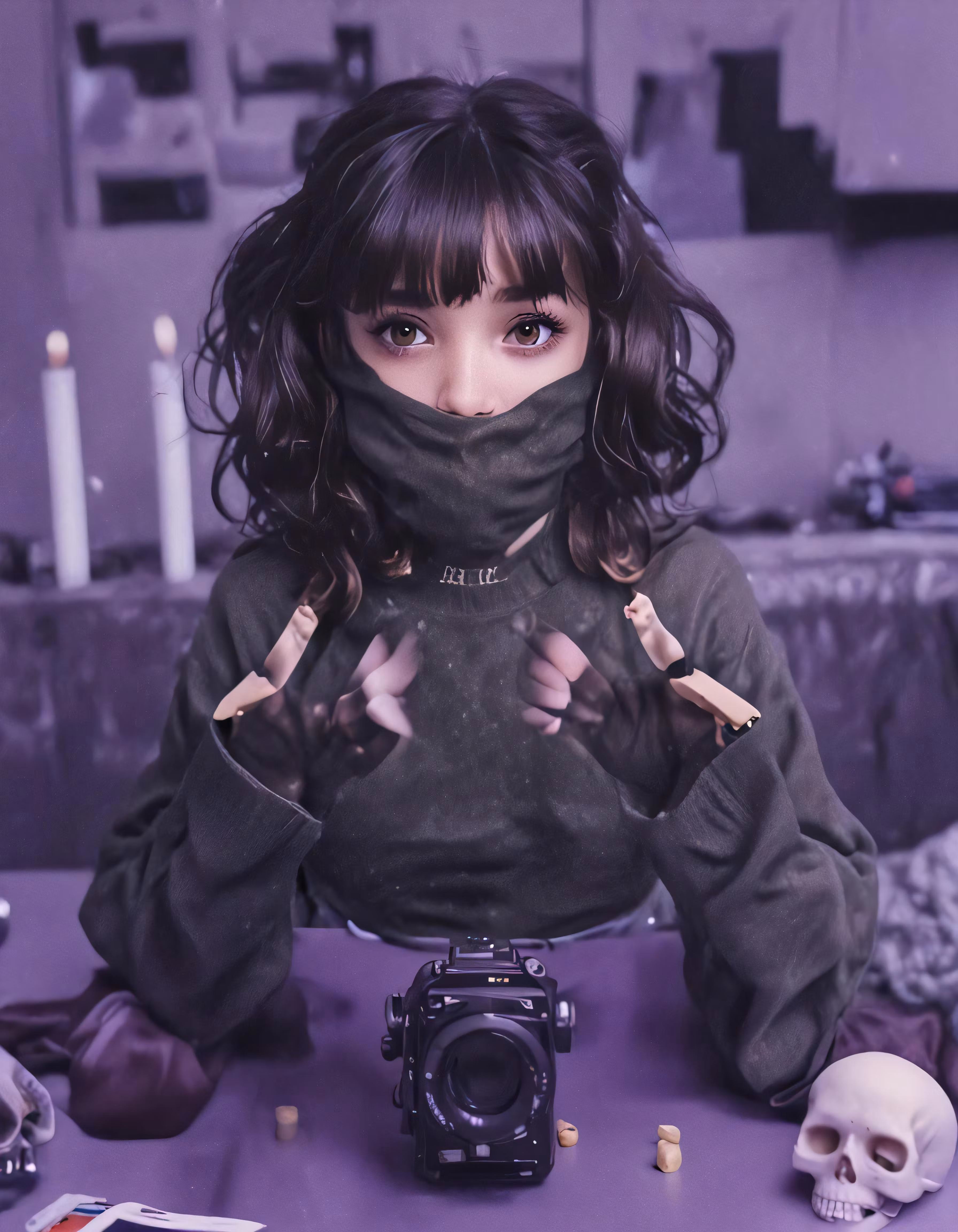 High resolution picture, free to use, the official logo for the 50 /a young woman in black hoodie and a black camera