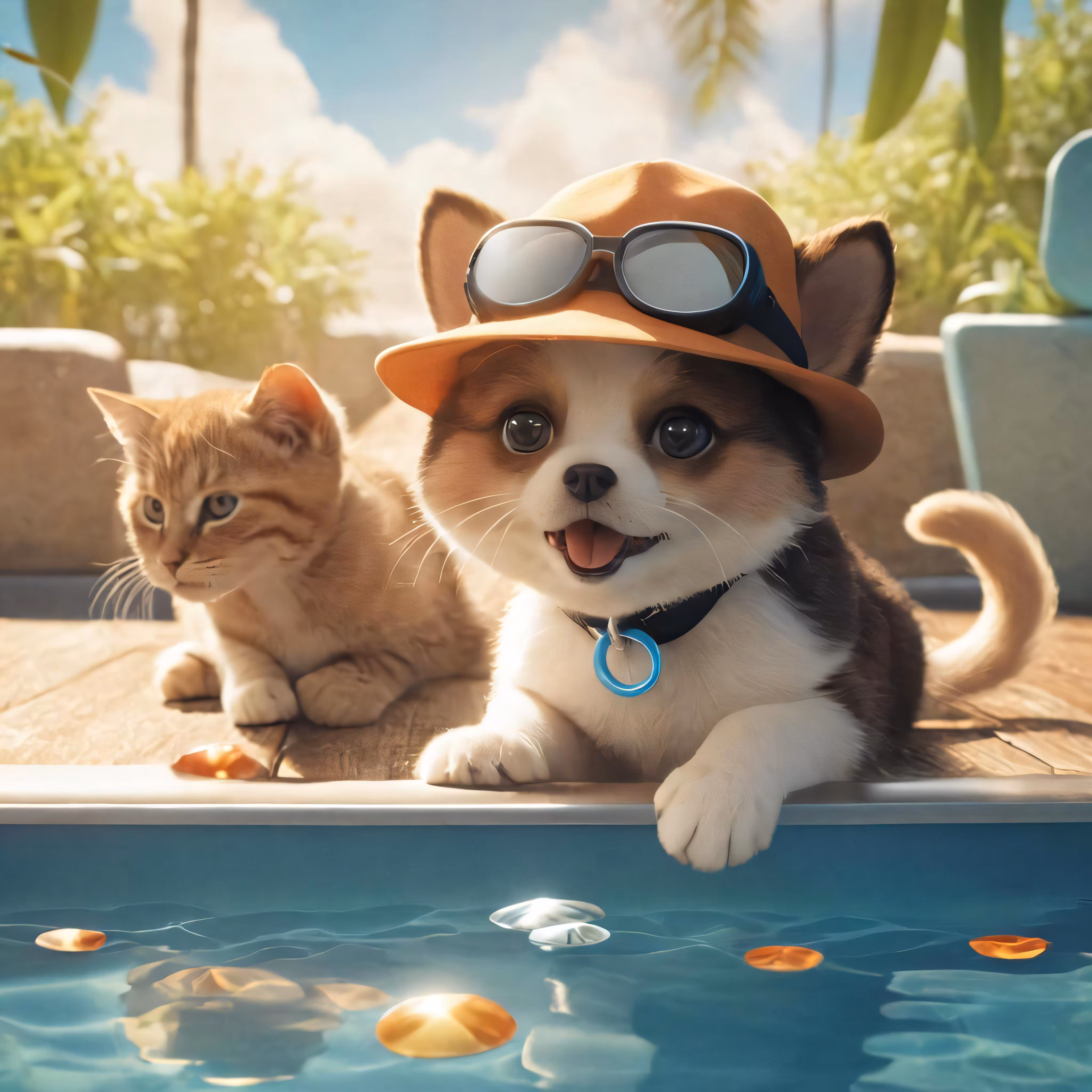 High resolution picture, free to use, the official logo for the 50 /an adorable small dog wearing a hat next to a cat