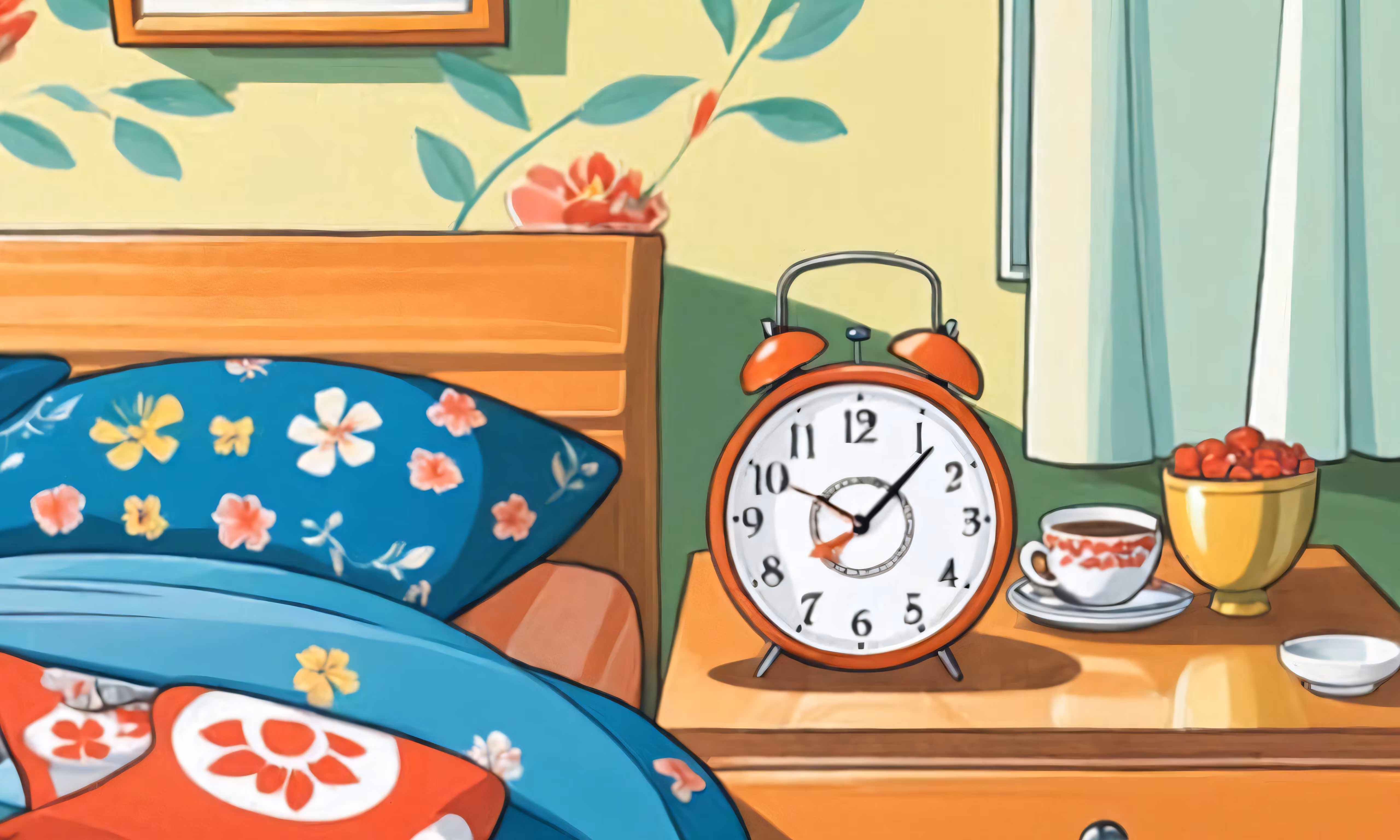 High resolution picture, free to use, the official logo for the 50 /an alarm clock sitting next to an unmade bed