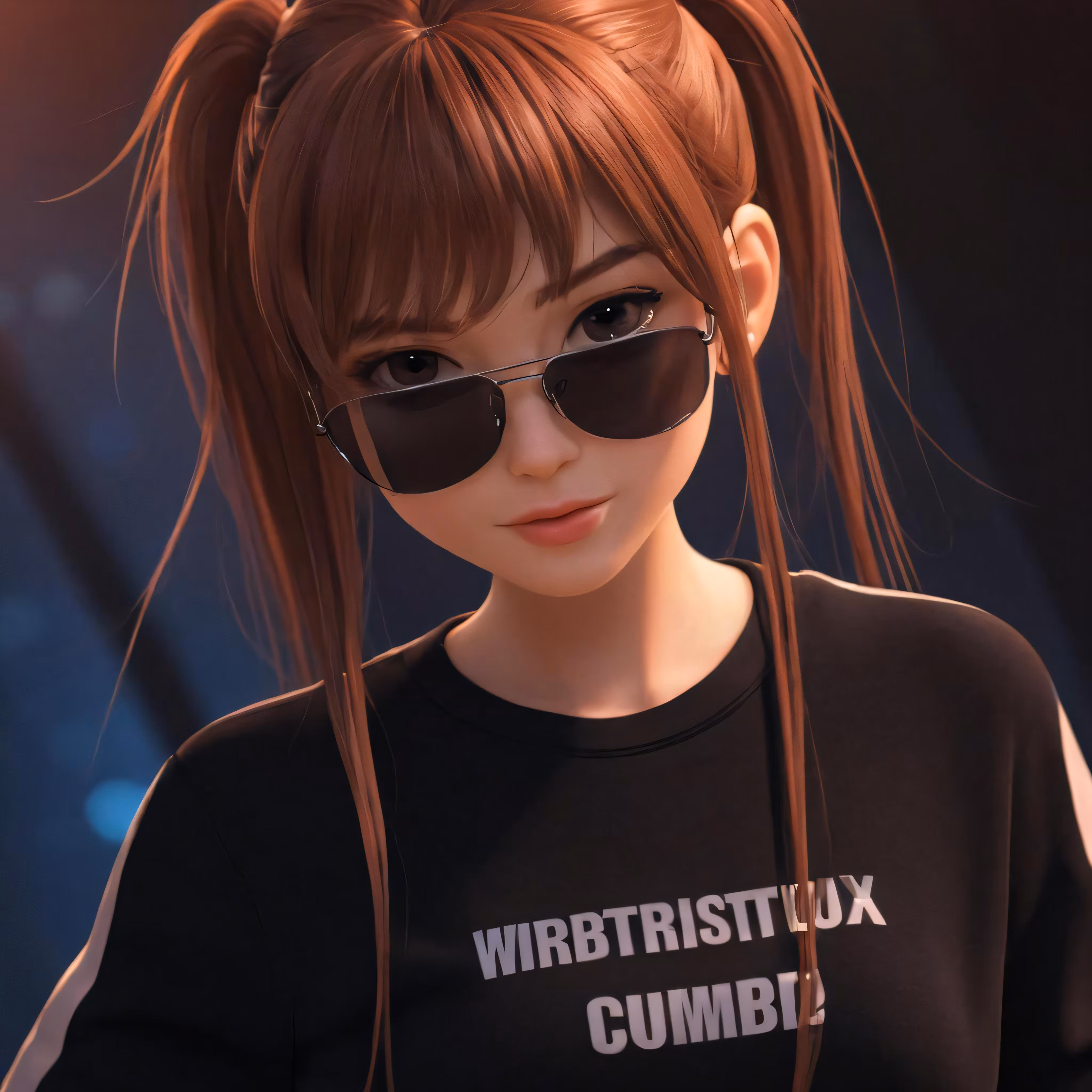 High resolution picture, free to use, the official logo for the 50 /an animated female is wearing black sunglasses and a shirt with words in red
