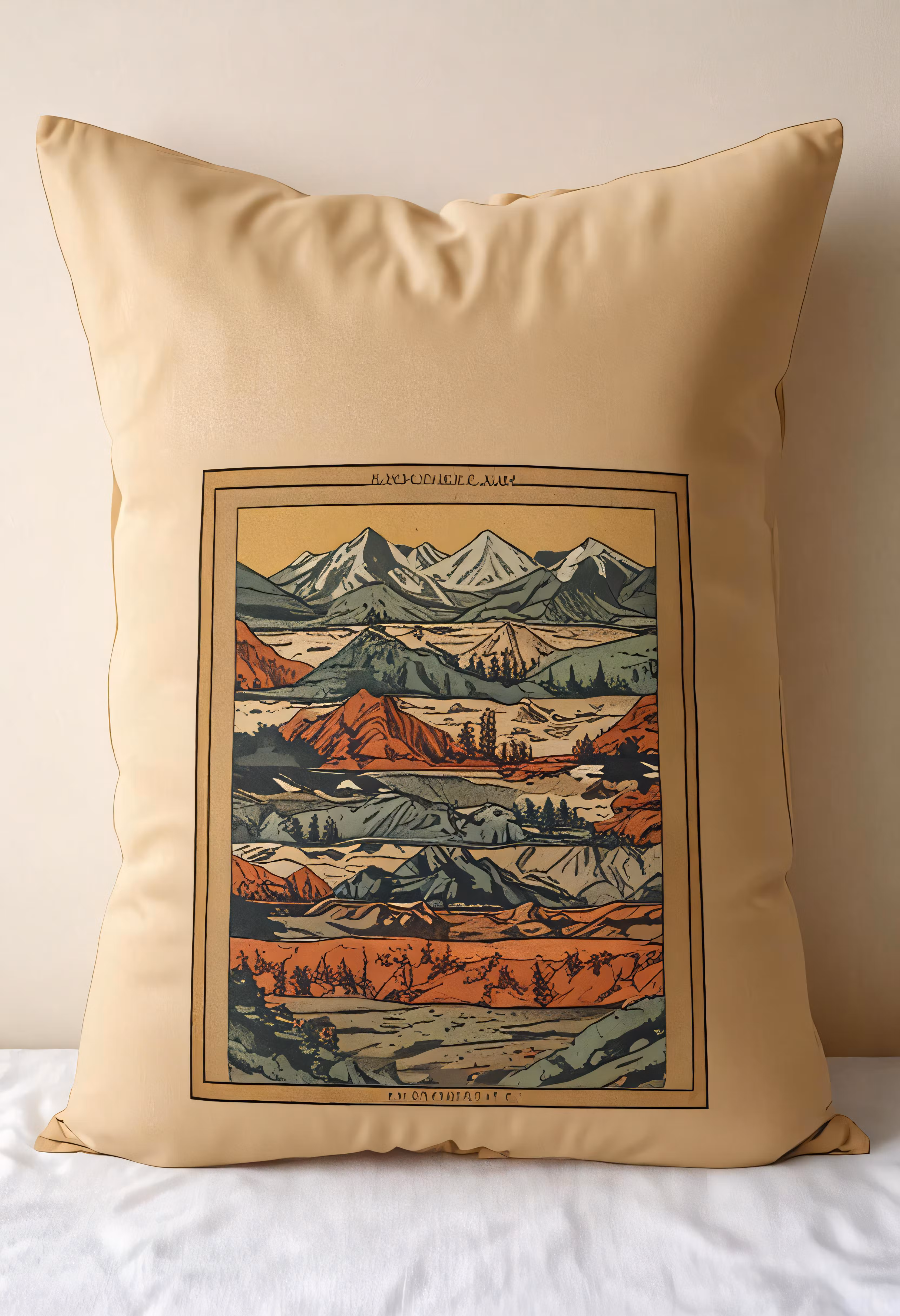 High resolution picture, free to use, the official logo for the 50 /an art print pillow sits on a bed