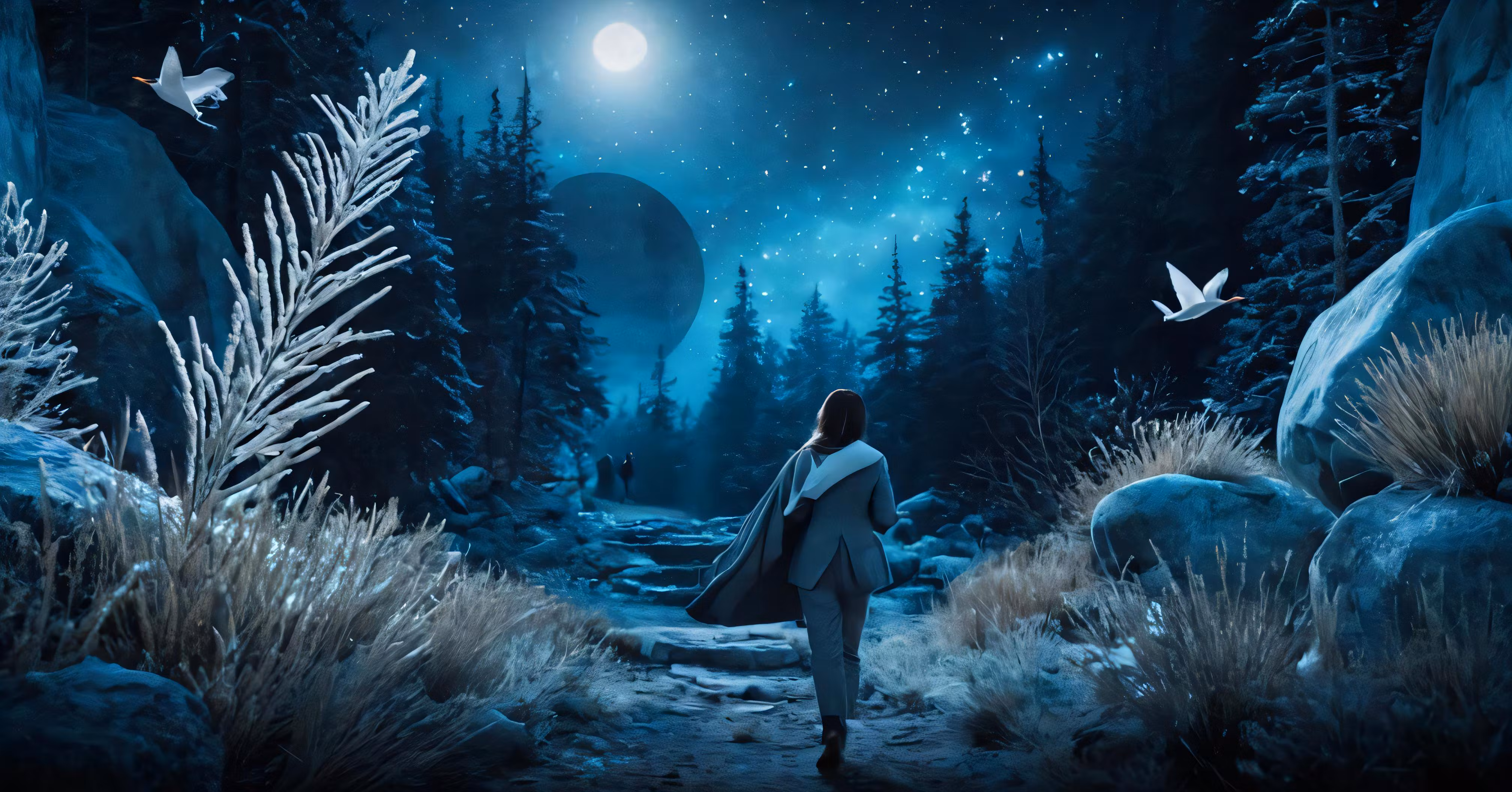 High resolution picture, free to use, the official logo for the 50 /an artistic painting shows a person walking towards a large open   air area