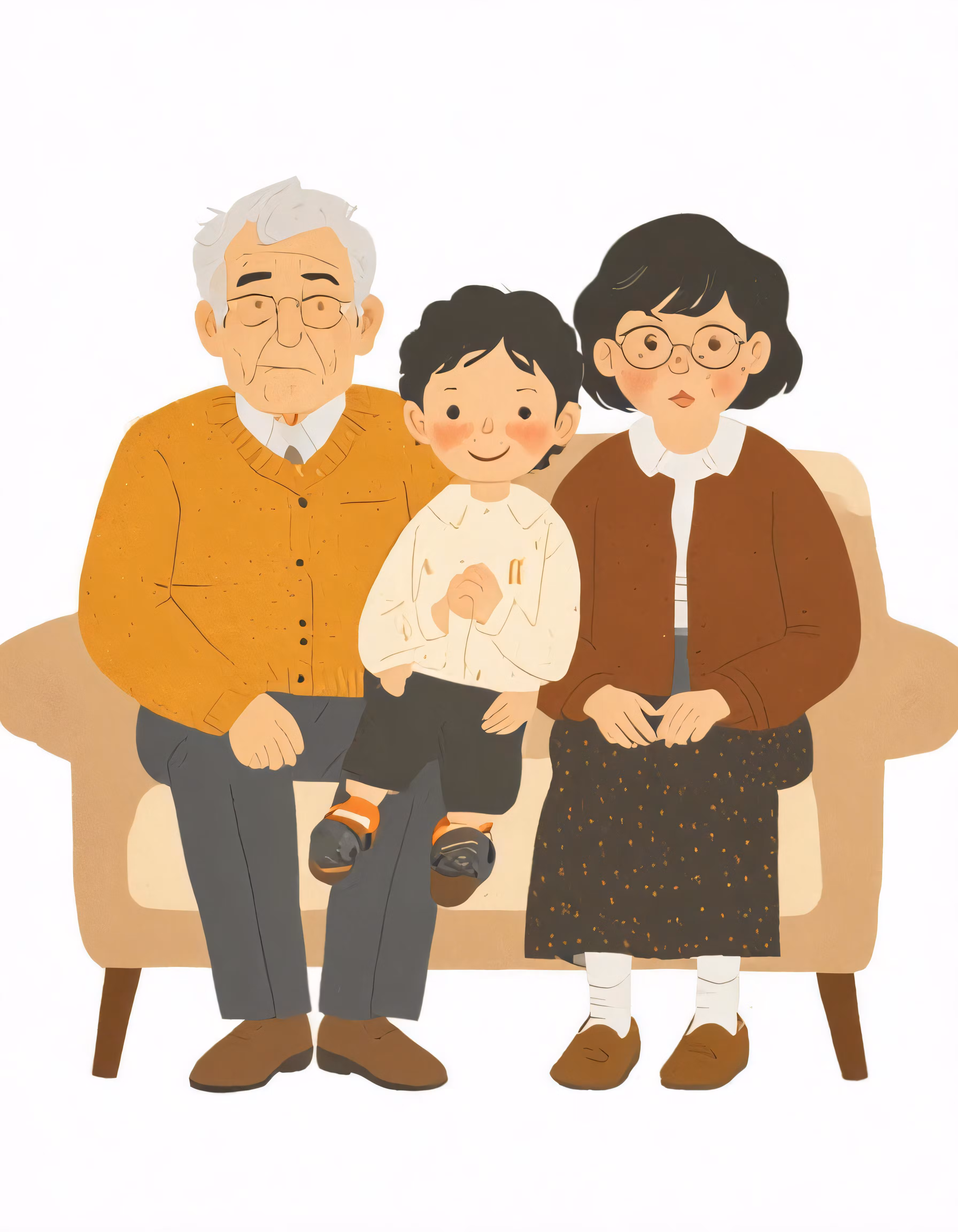 High resolution picture, free to use, the official logo for the 50 /an illustration of a family sitting together on a couch