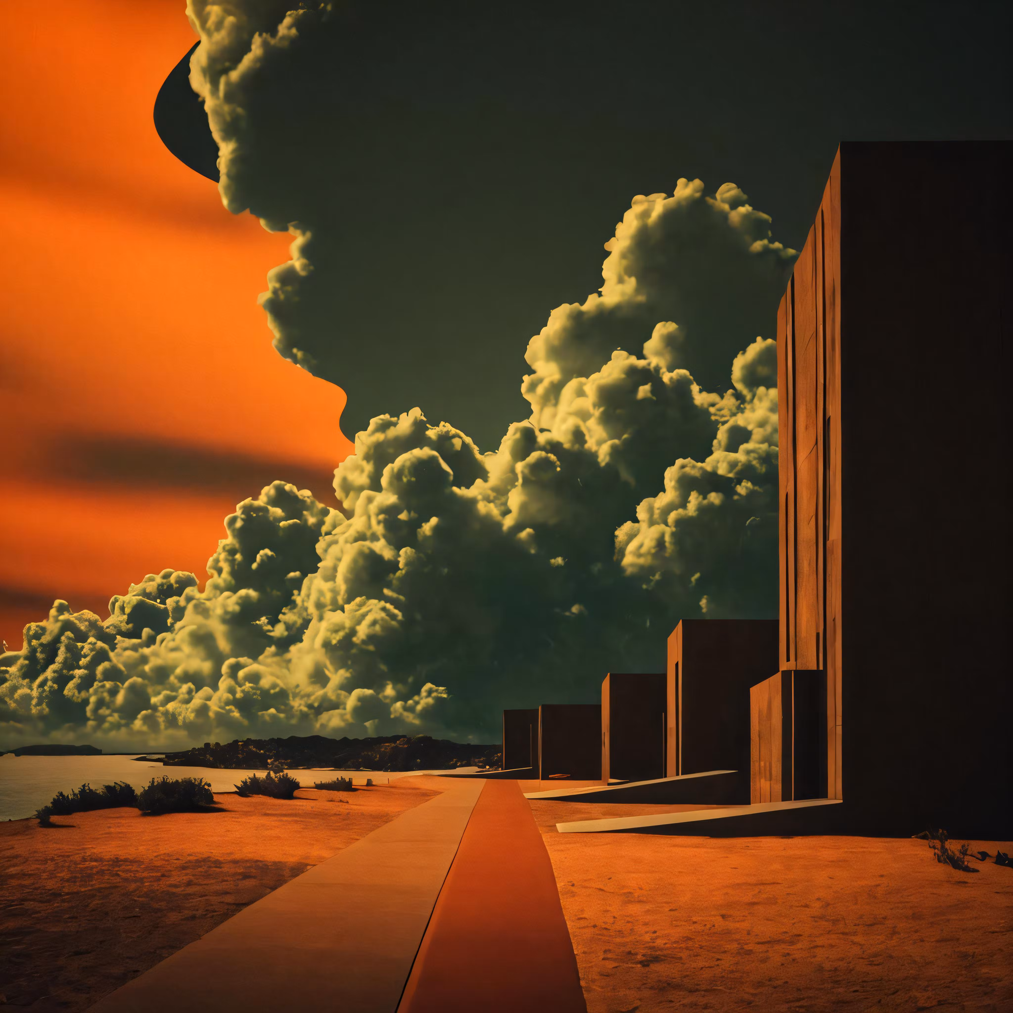 High resolution picture, free to use, the official logo for the 50 /an image of a walkway between two buildings with clouds