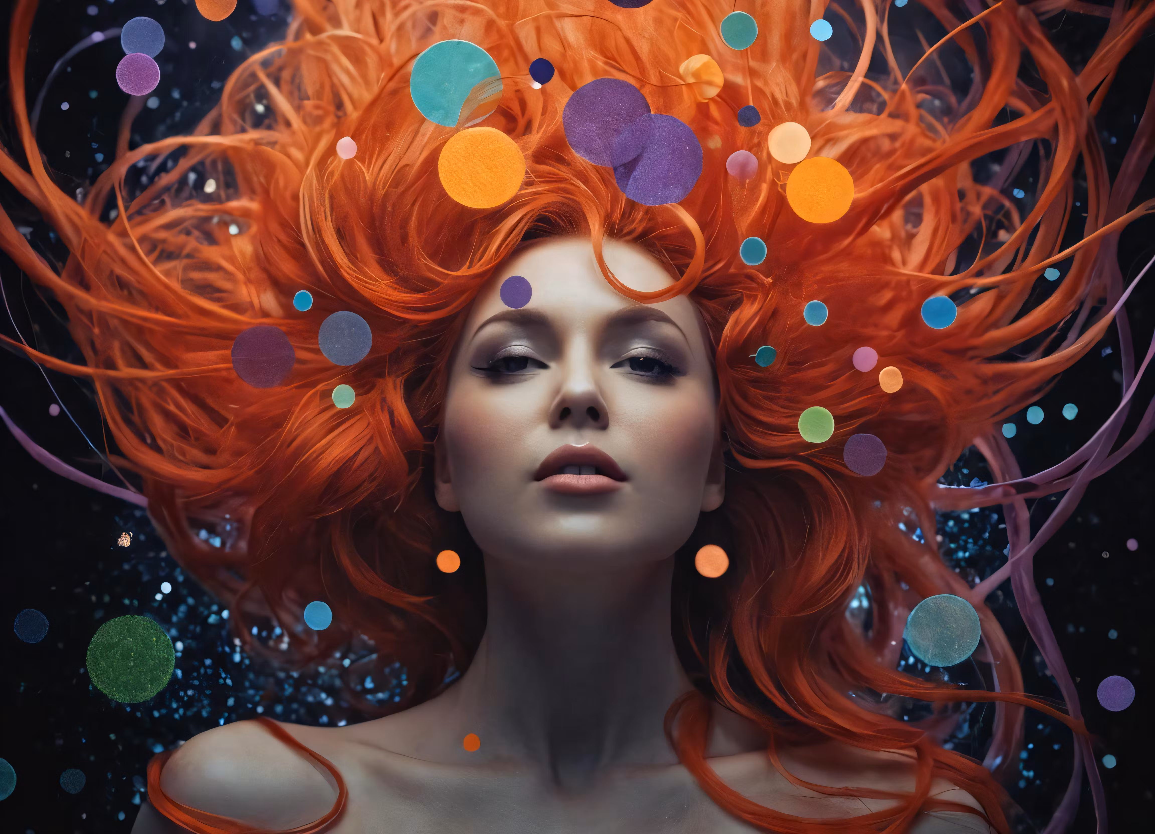 High resolution picture, free to use, the official logo for the 50 /an image of a woman with long red hair and bubbles on her head