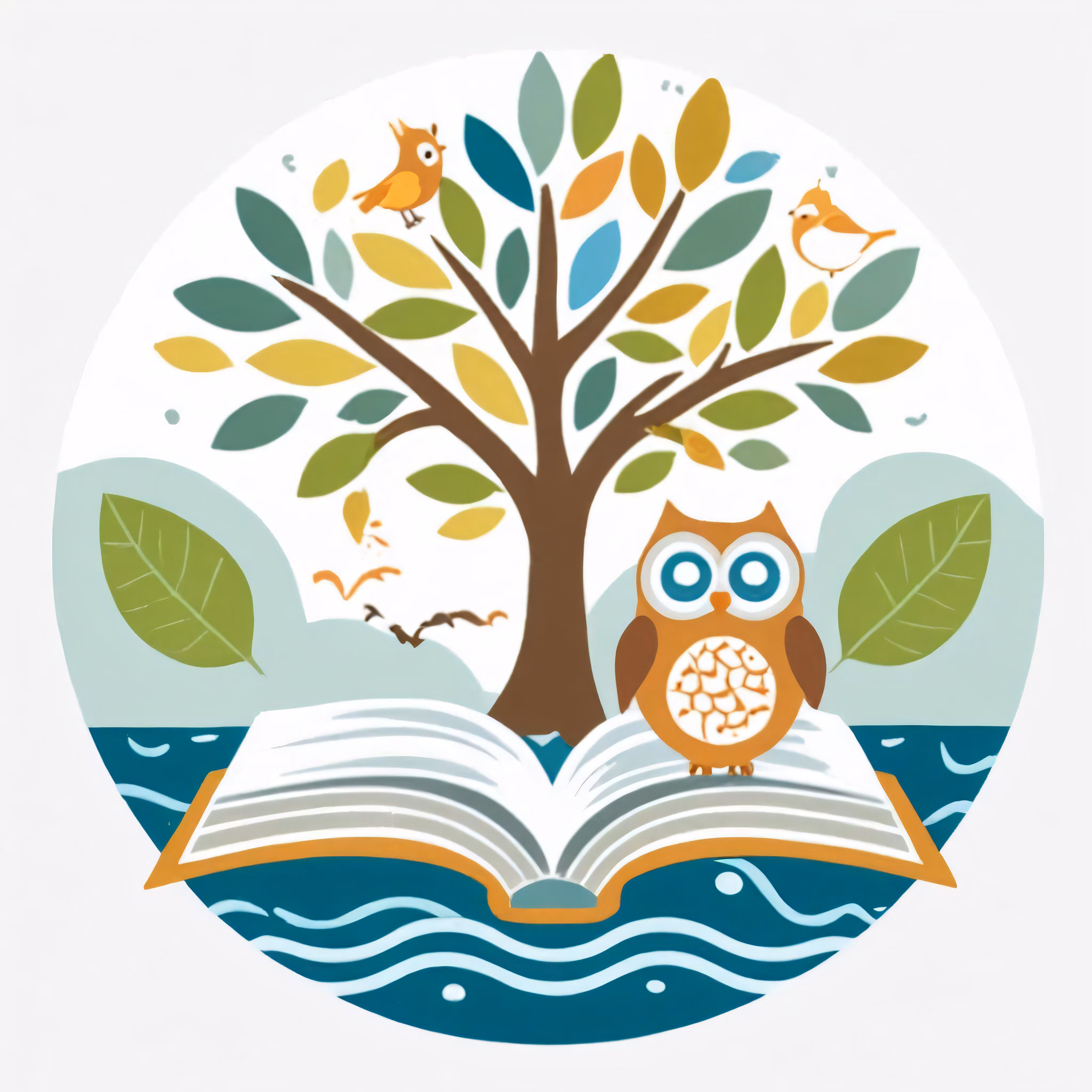 High resolution picture, free to use, the official logo for the 50 /an owl sitting on a book under the tree with leaves