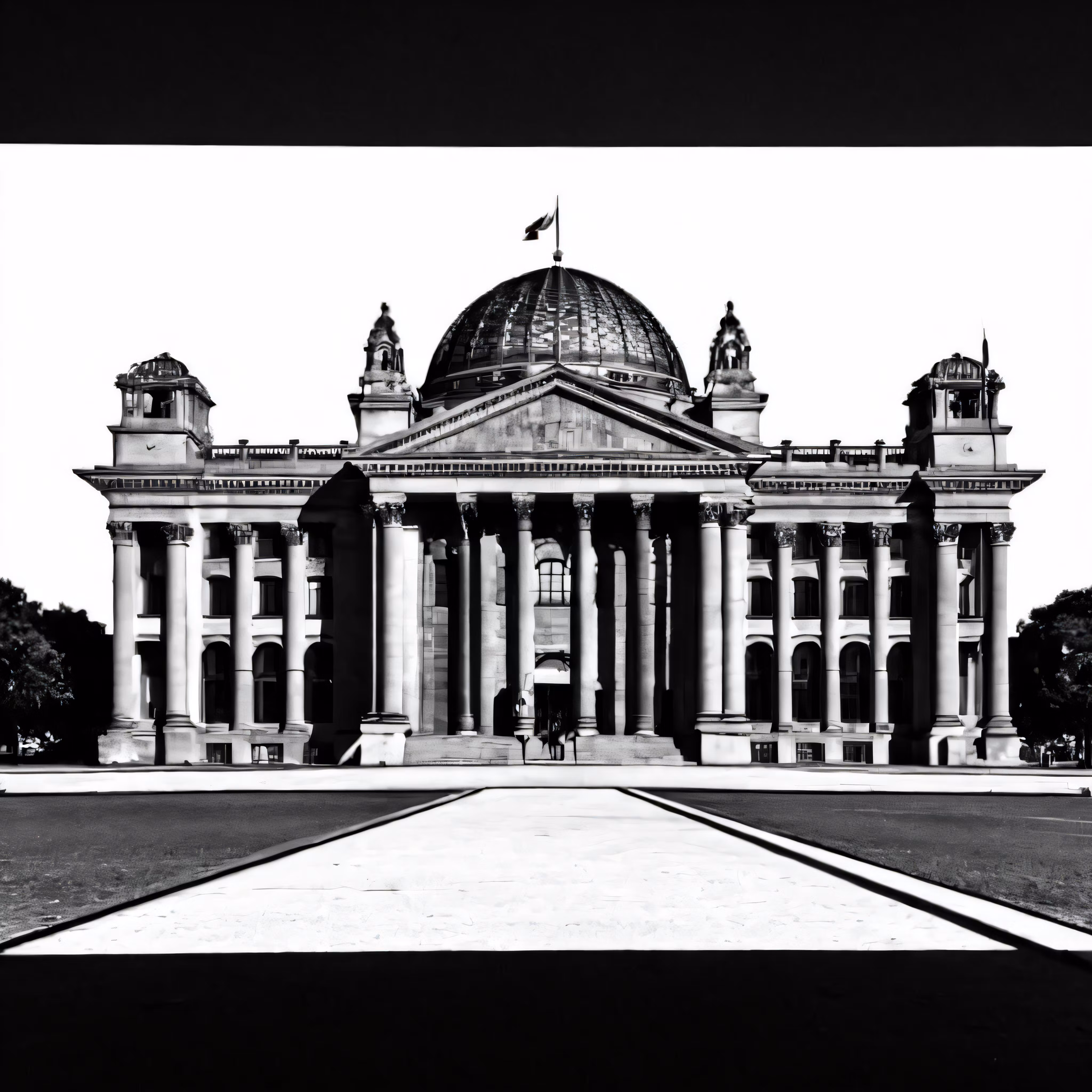 High resolution picture, free to use, the official logo for the 50 /black and white photograph of the state capitol building