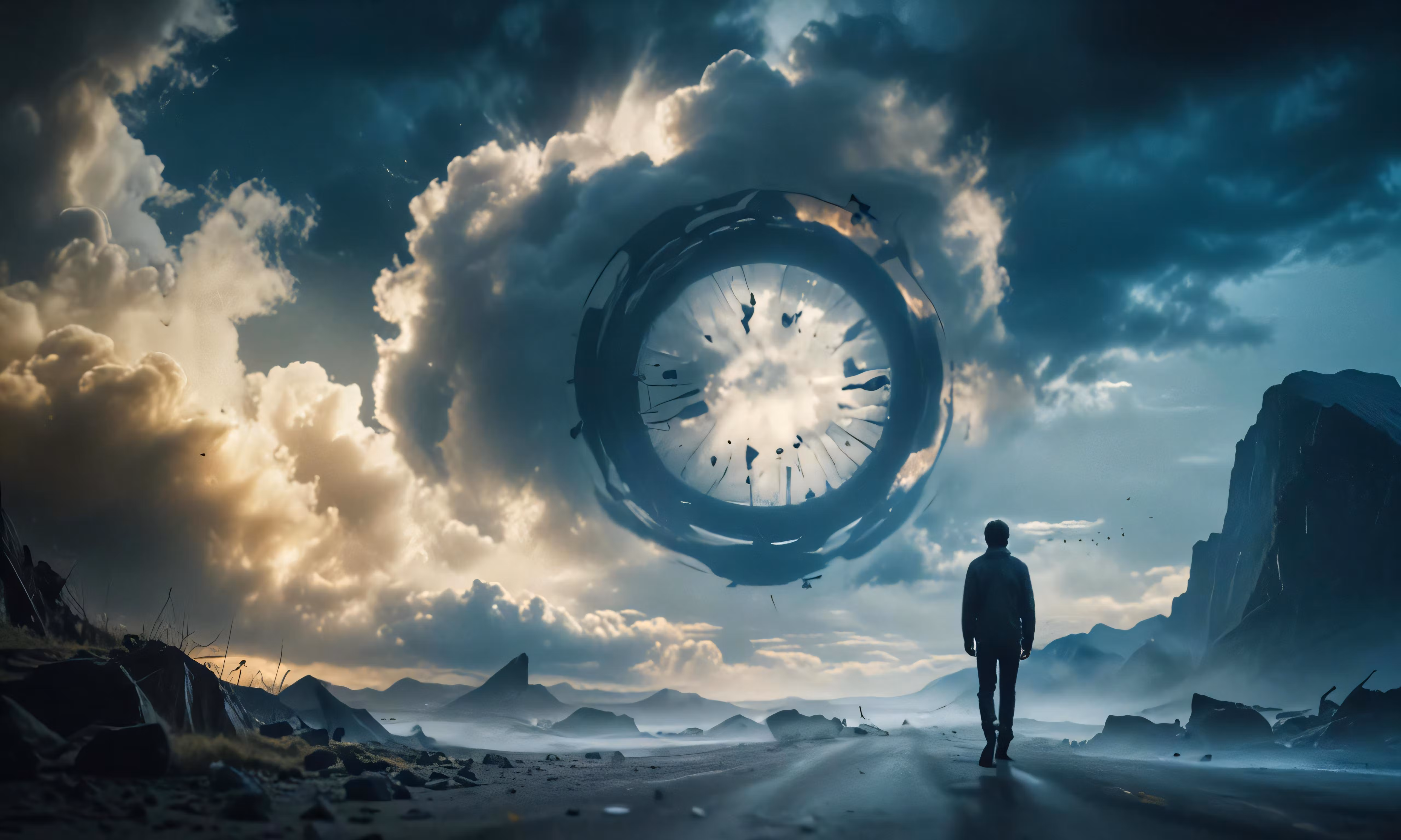 High resolution picture, free to use, the official logo for the 50 /man looking at a big round clock in the clouds