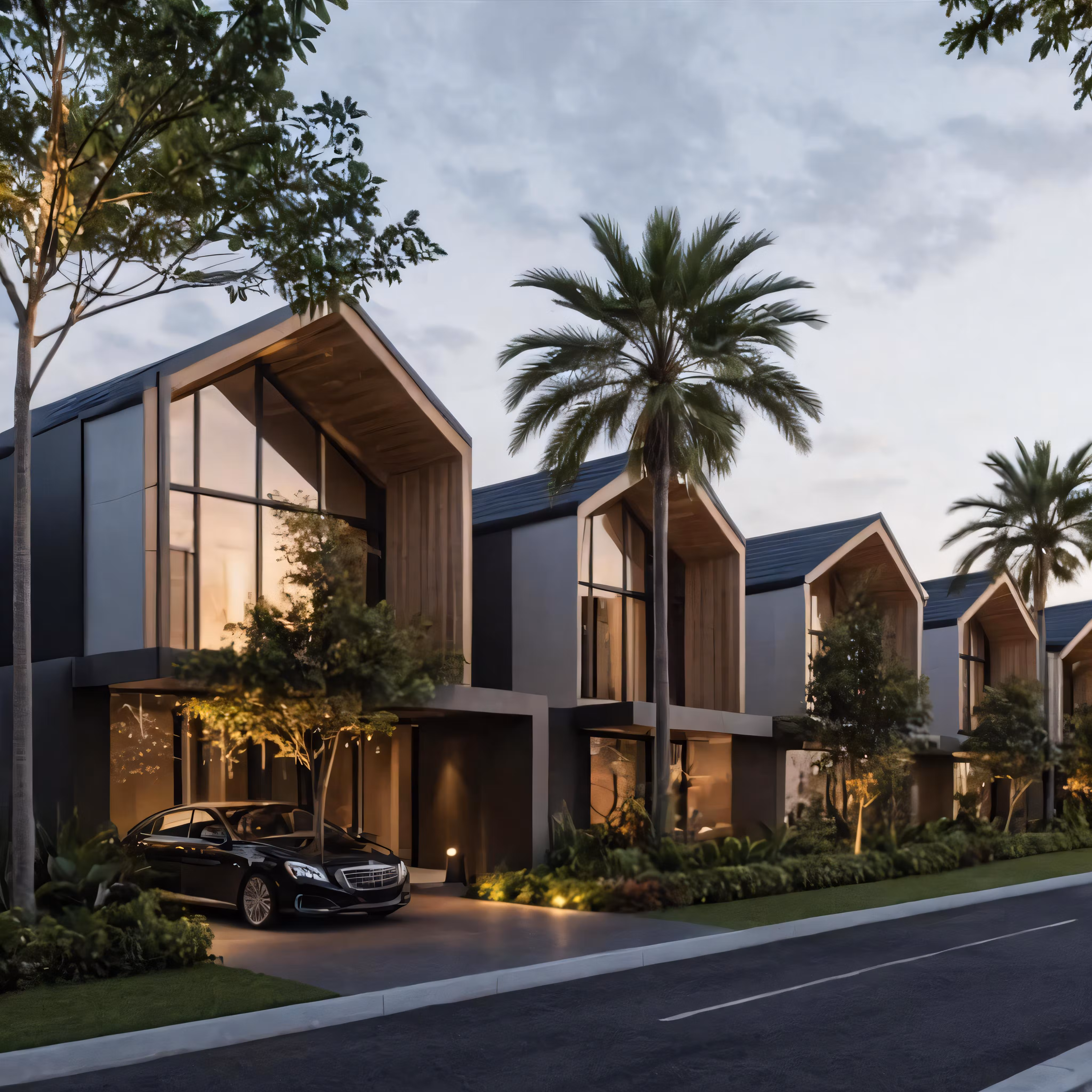 High resolution picture, free to use, the official logo for the 50 /modern residential building with palm trees on either side