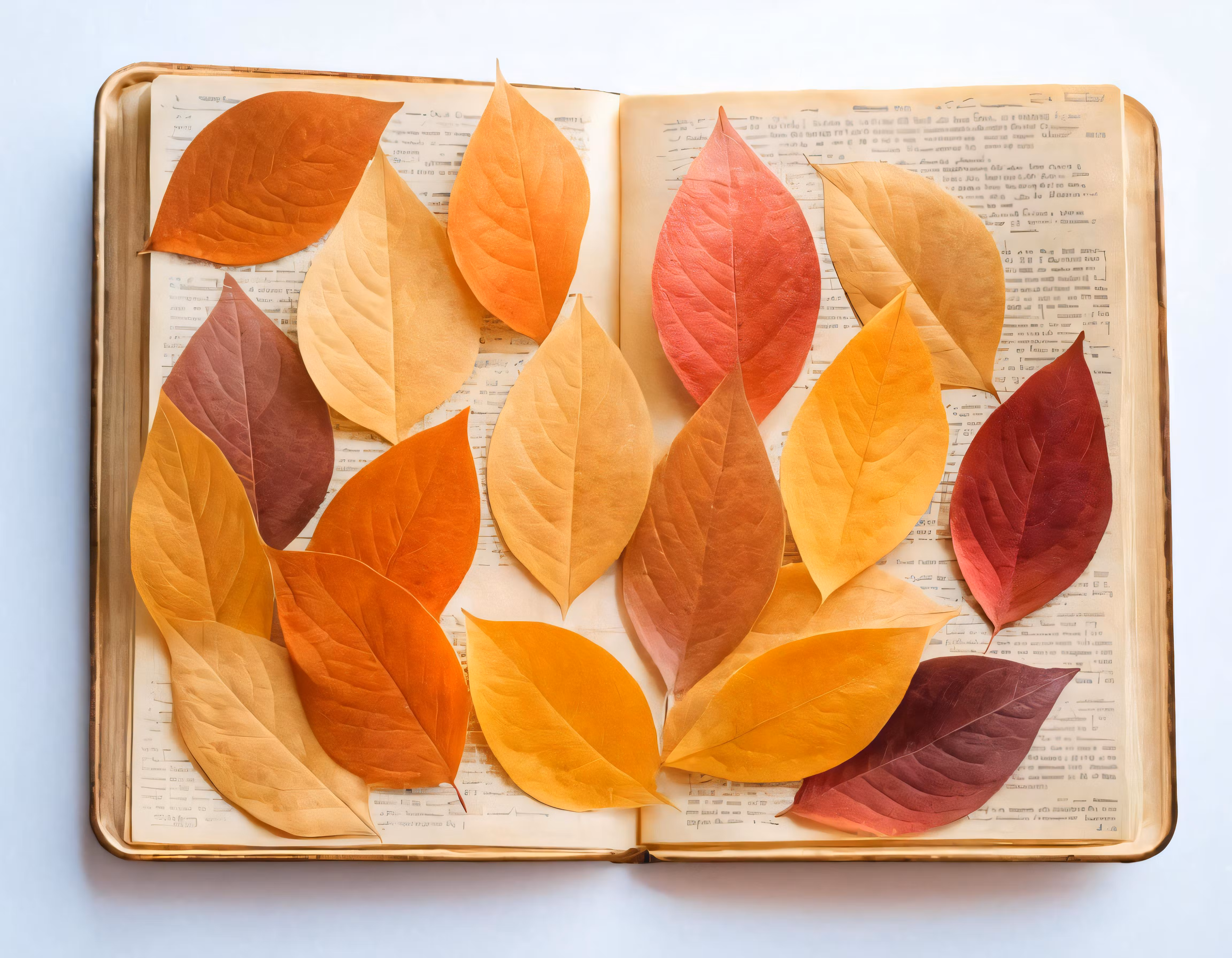High resolution picture, free to use, the official logo for the 50 /some very pretty autumn leaves on an open book