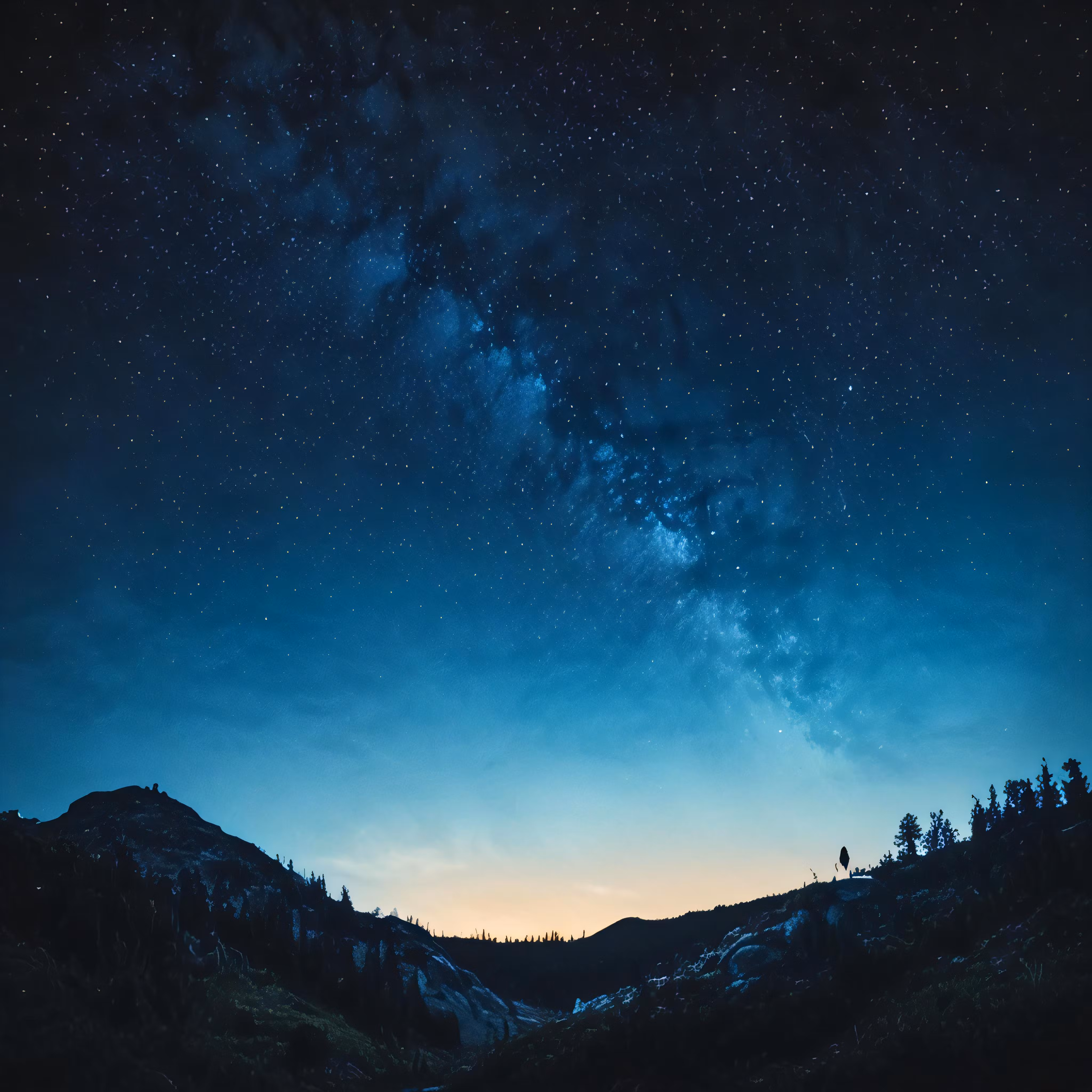 High resolution picture, free to use, the official logo for the 50 /stars in the sky above some trees and mountains