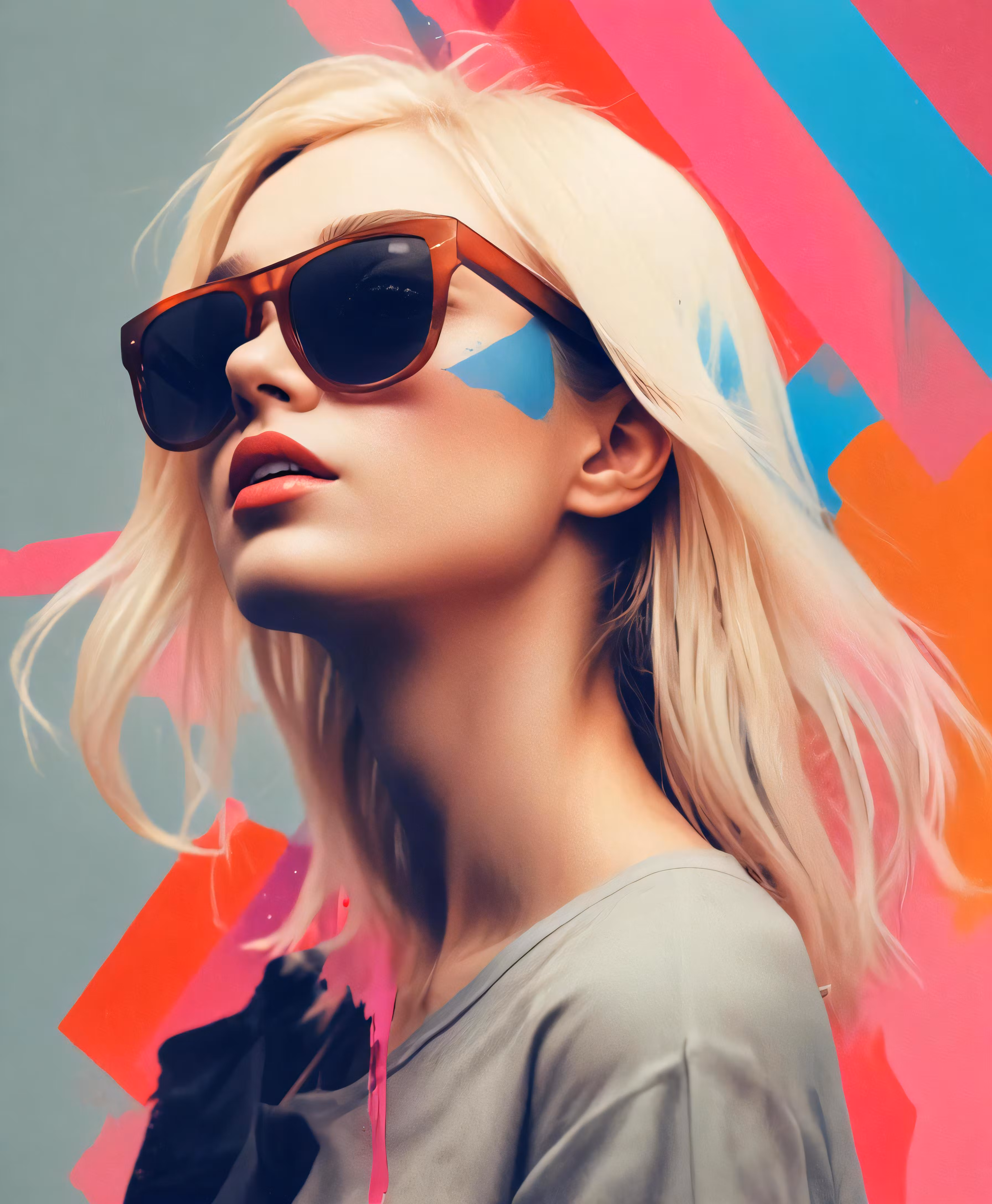 High resolution picture, free to use, the official logo for the 50 /the blonde haired woman in sunglasses looks into the distance