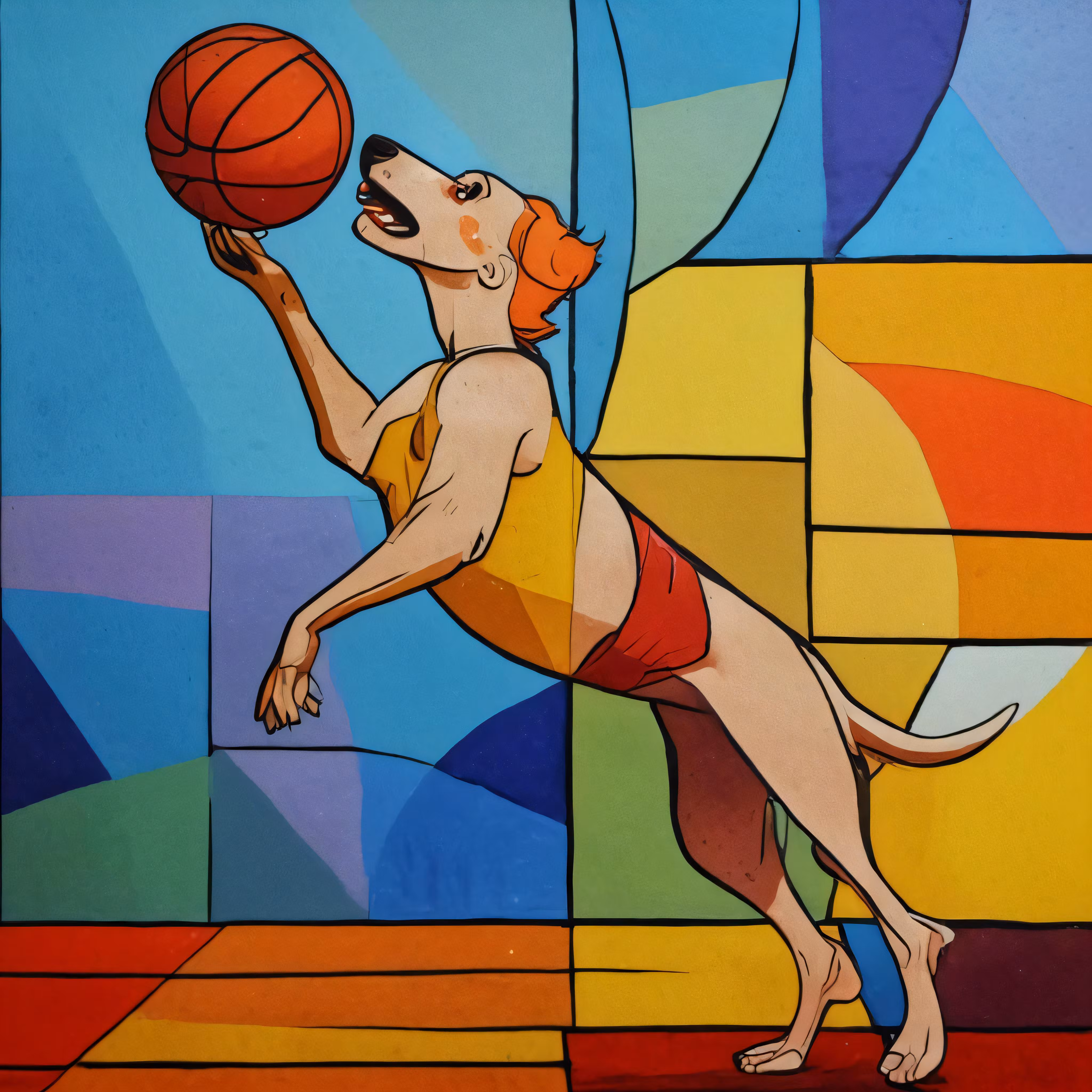 High resolution picture, free to use, the official logo for the 50 /the dog is playing with a basketball in a yellow outfit
