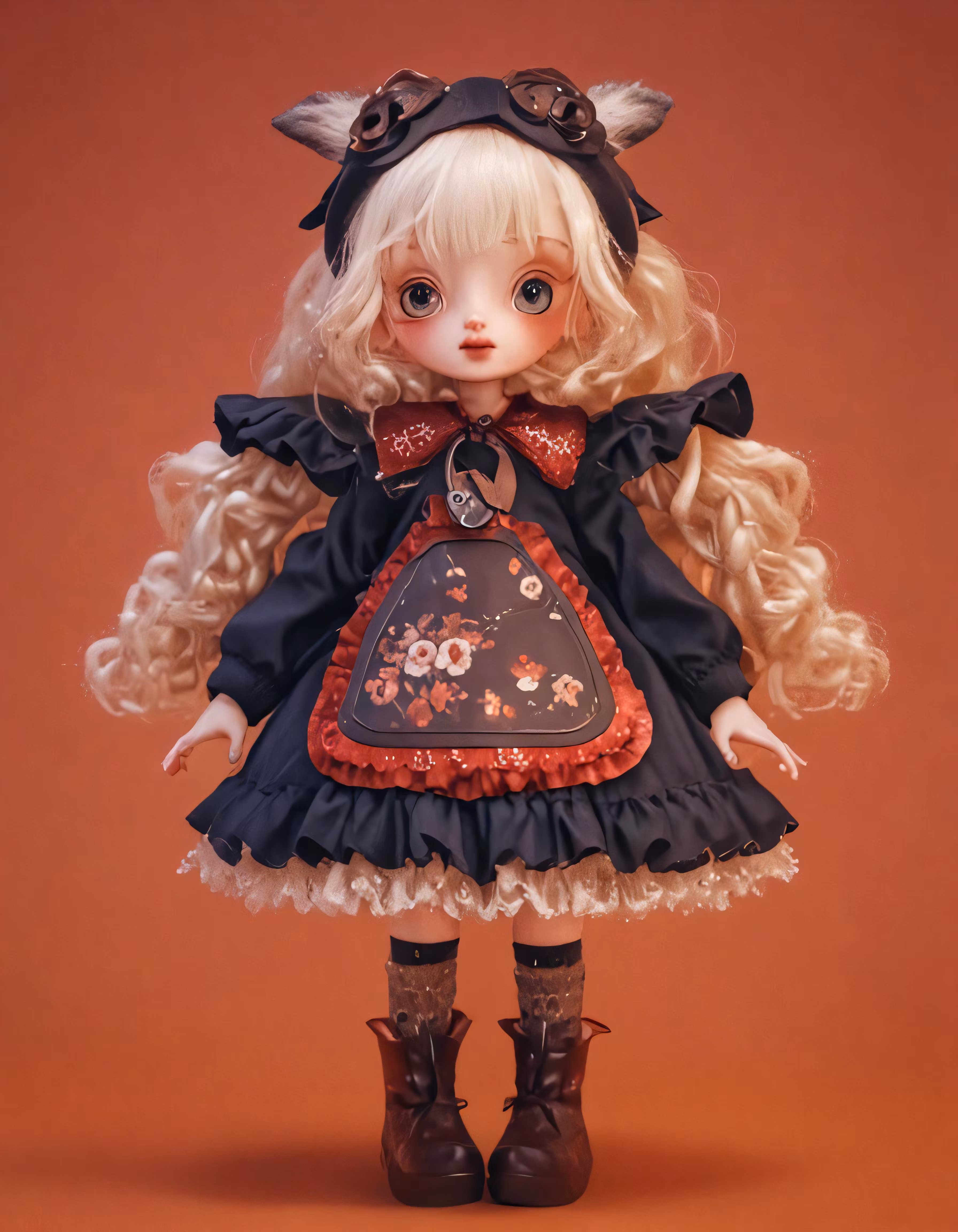 High resolution picture, free to use, the official logo for the 50 /the doll is wearing a pretty dress and boots