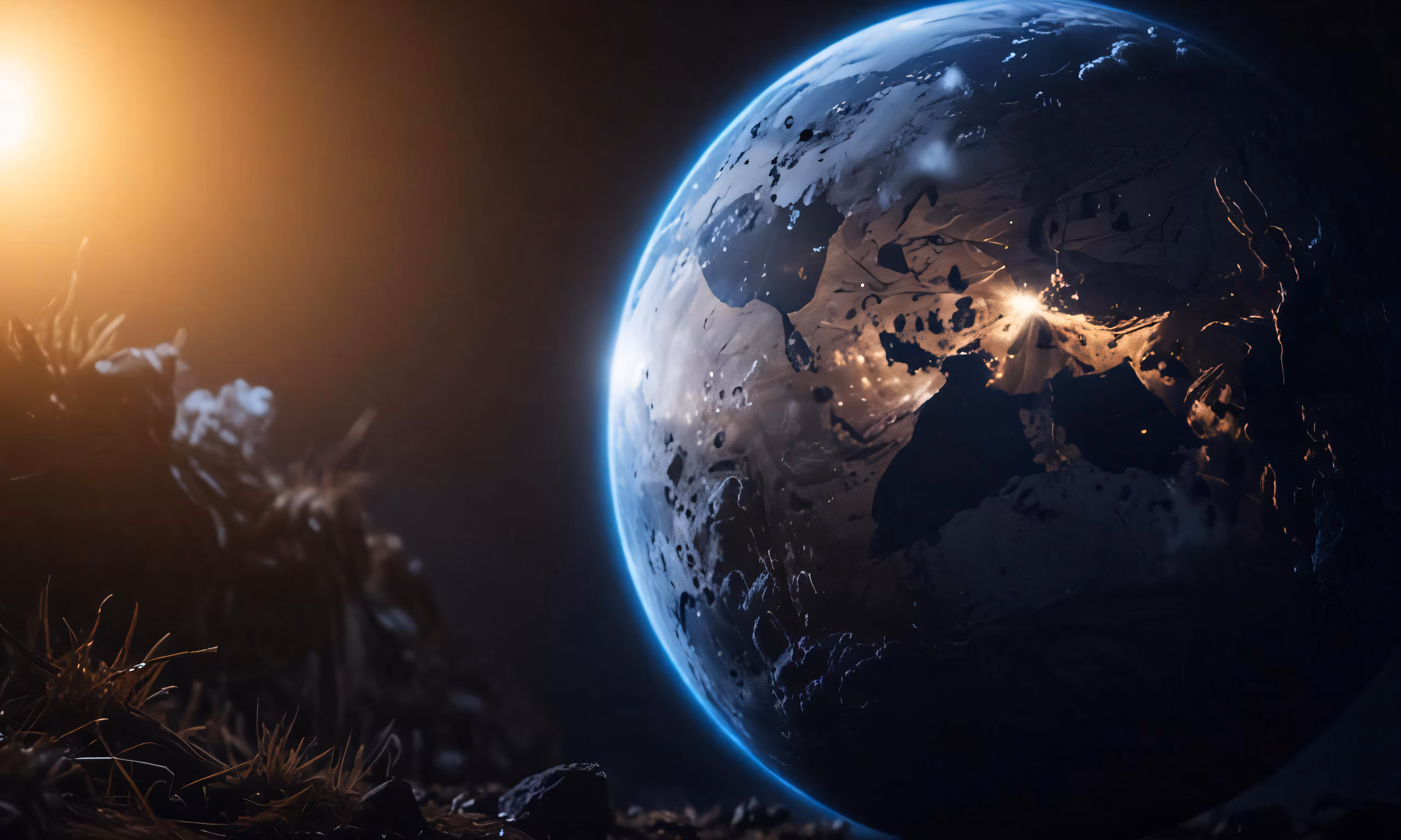 High resolution picture, free to use, the official logo for the 50 /the earth in space lit by the sun with clouds and bright light