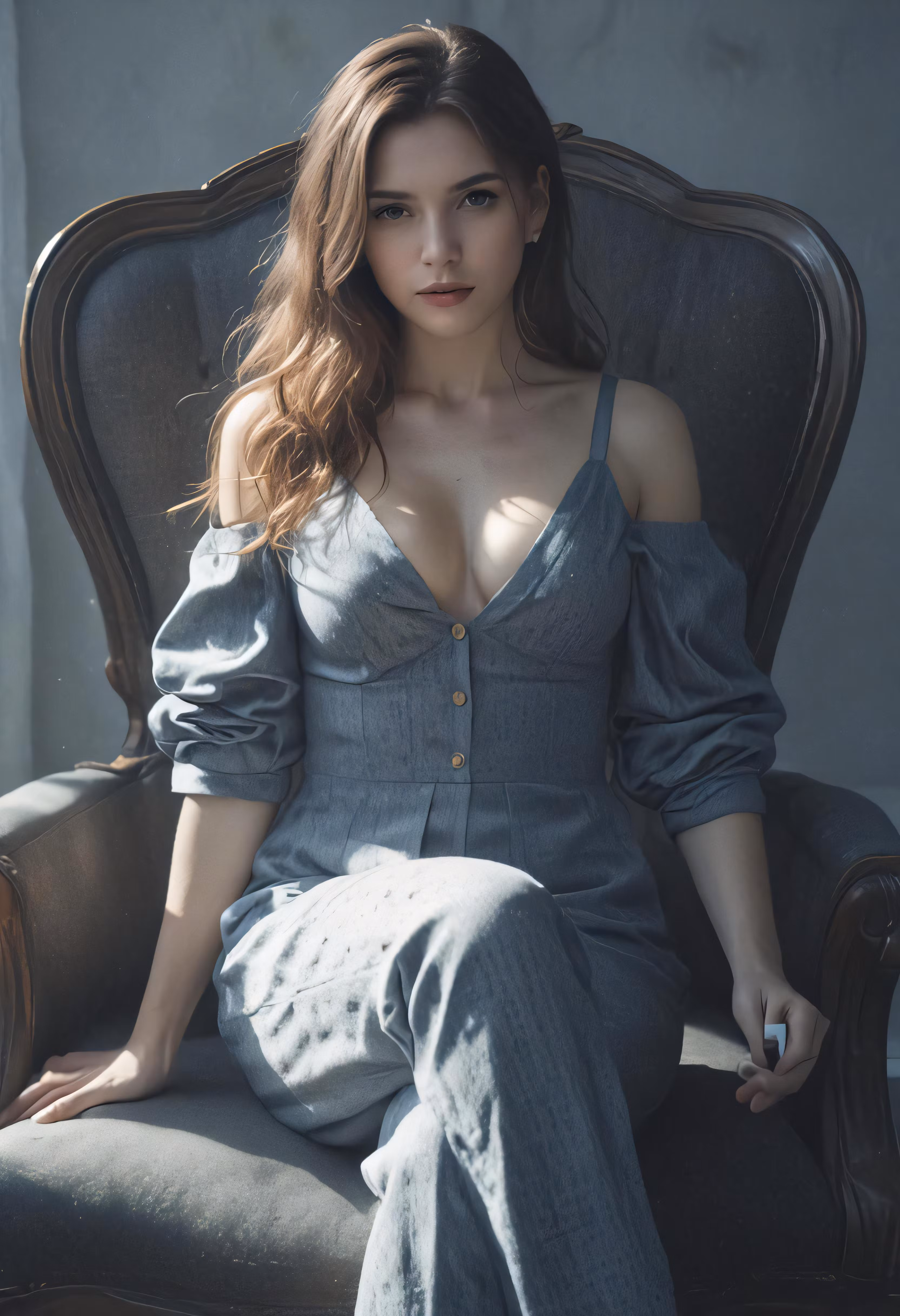 High resolution picture, free to use, the official logo for the 50 /the lady is sitting on the chair posing for the camera