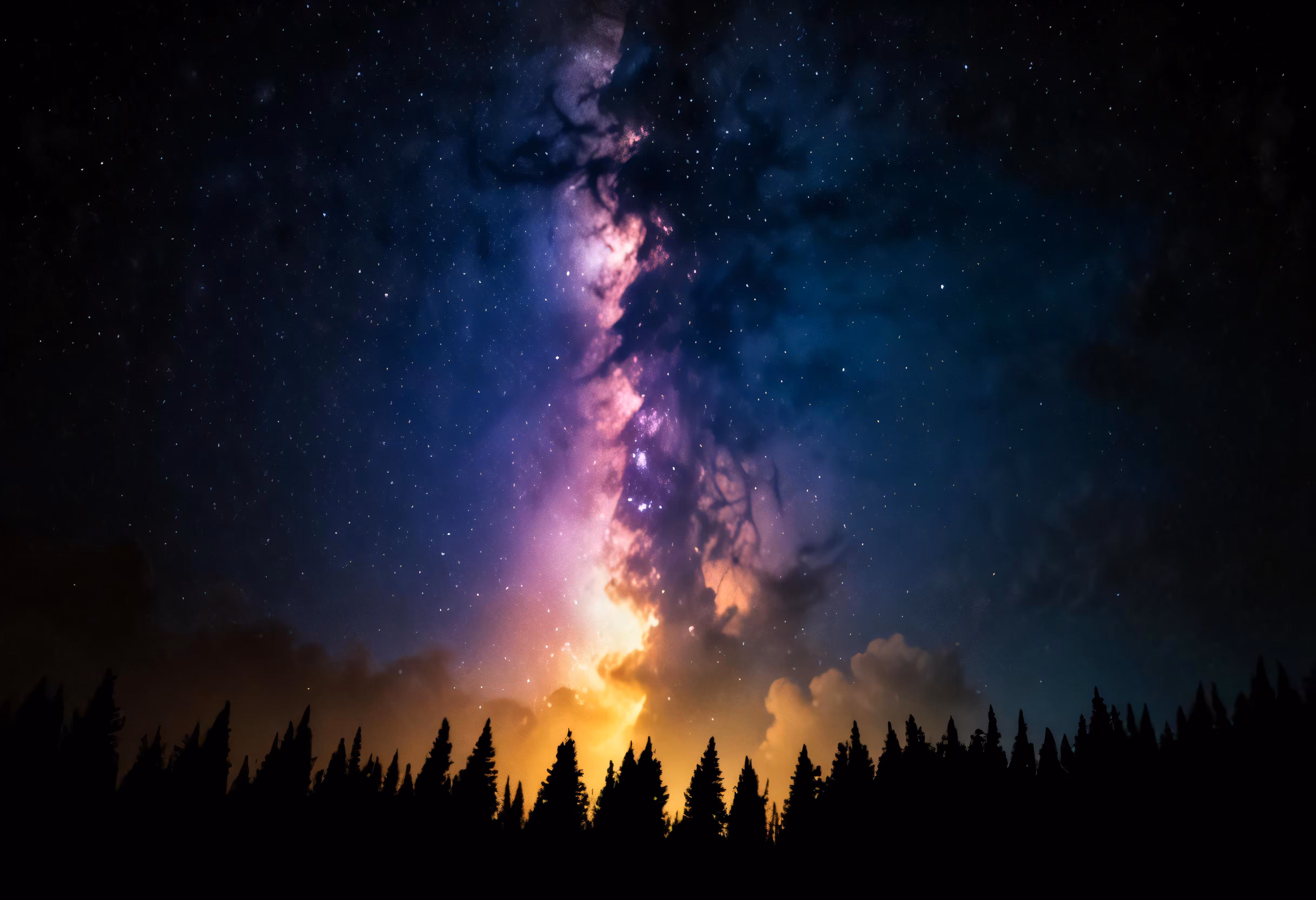 High resolution picture, free to use, the official logo for the 50 /the milky shines brightly through the silhouettes of the trees