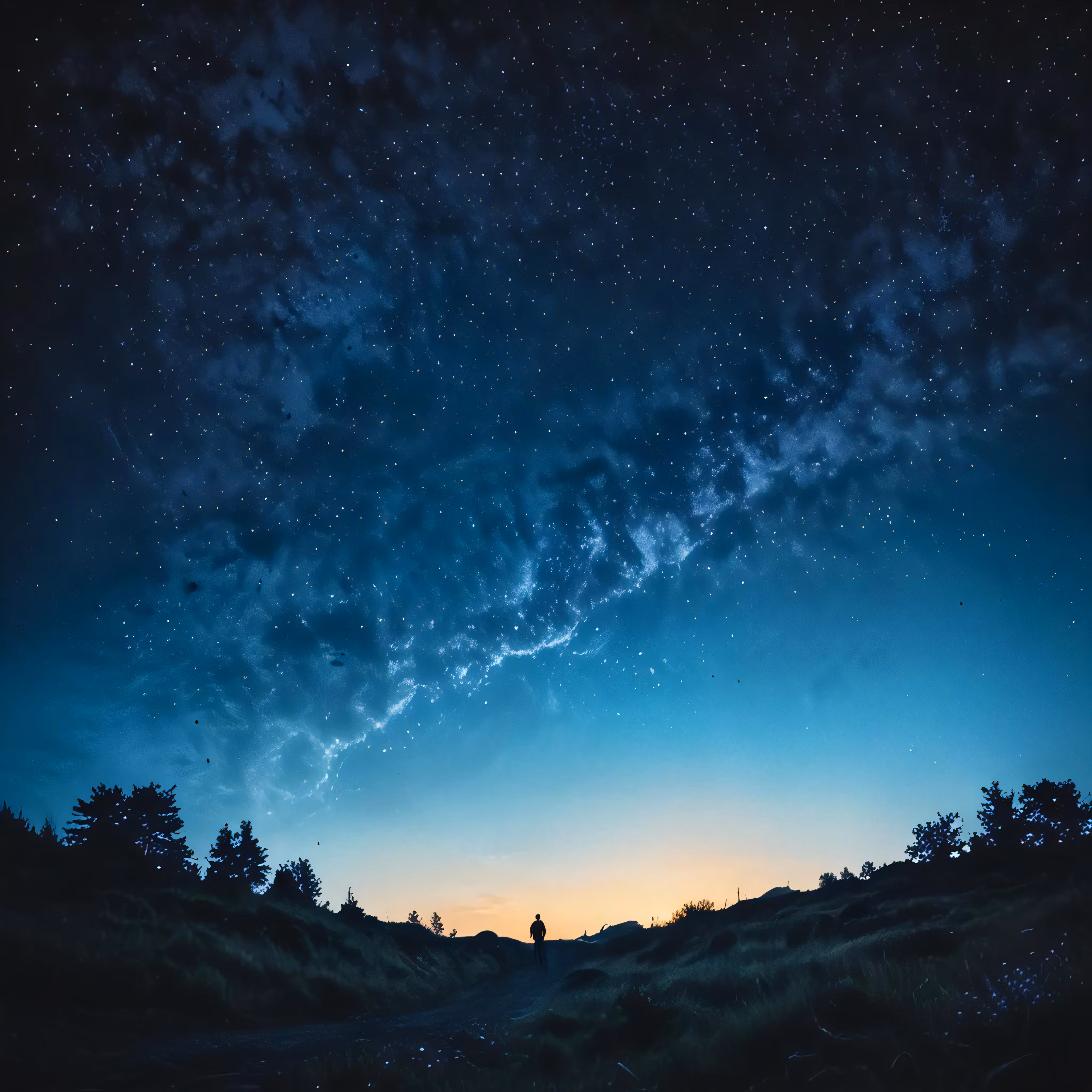 High resolution picture, free to use, the official logo for the 50 /the night sky with stars shines brightly behind trees