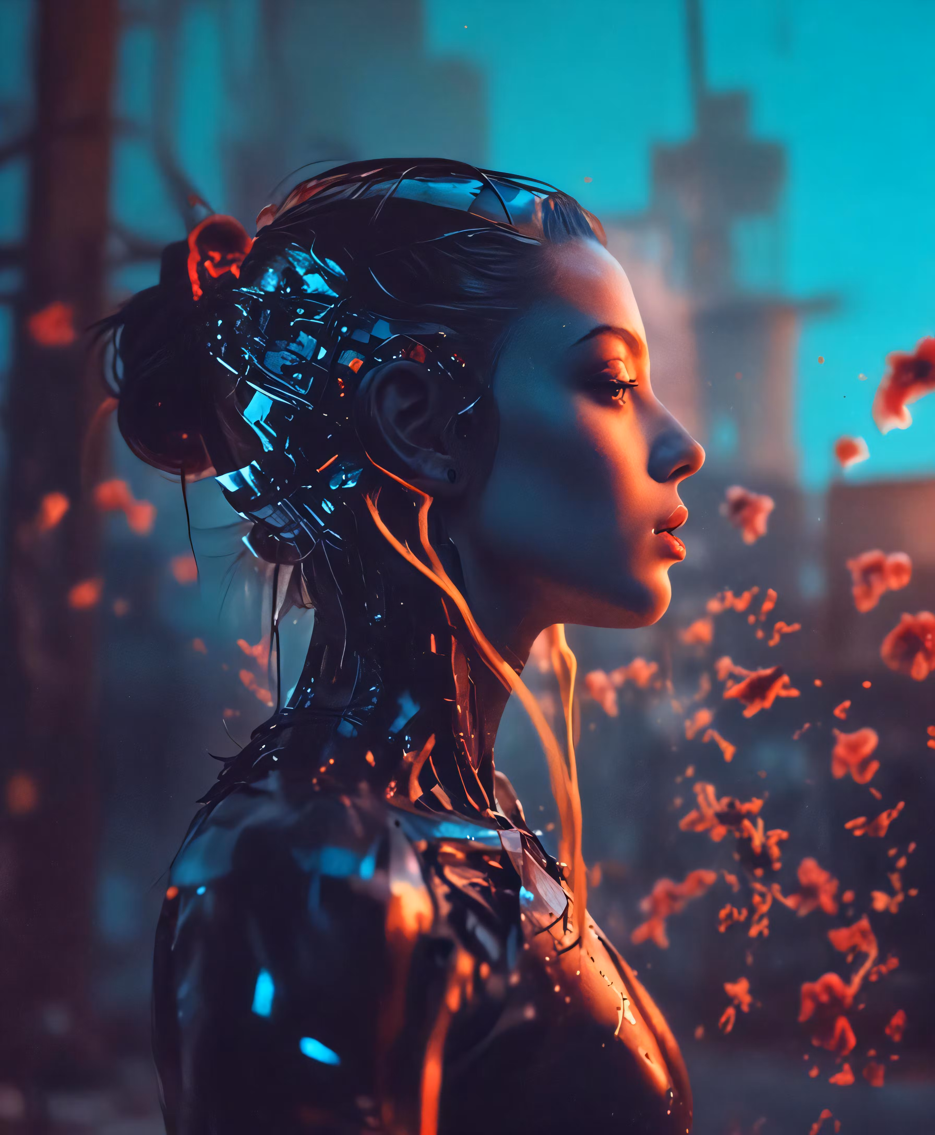 High resolution picture, free to use, the official logo for the 50 /the portrait of a woman is made up of red and blue objects