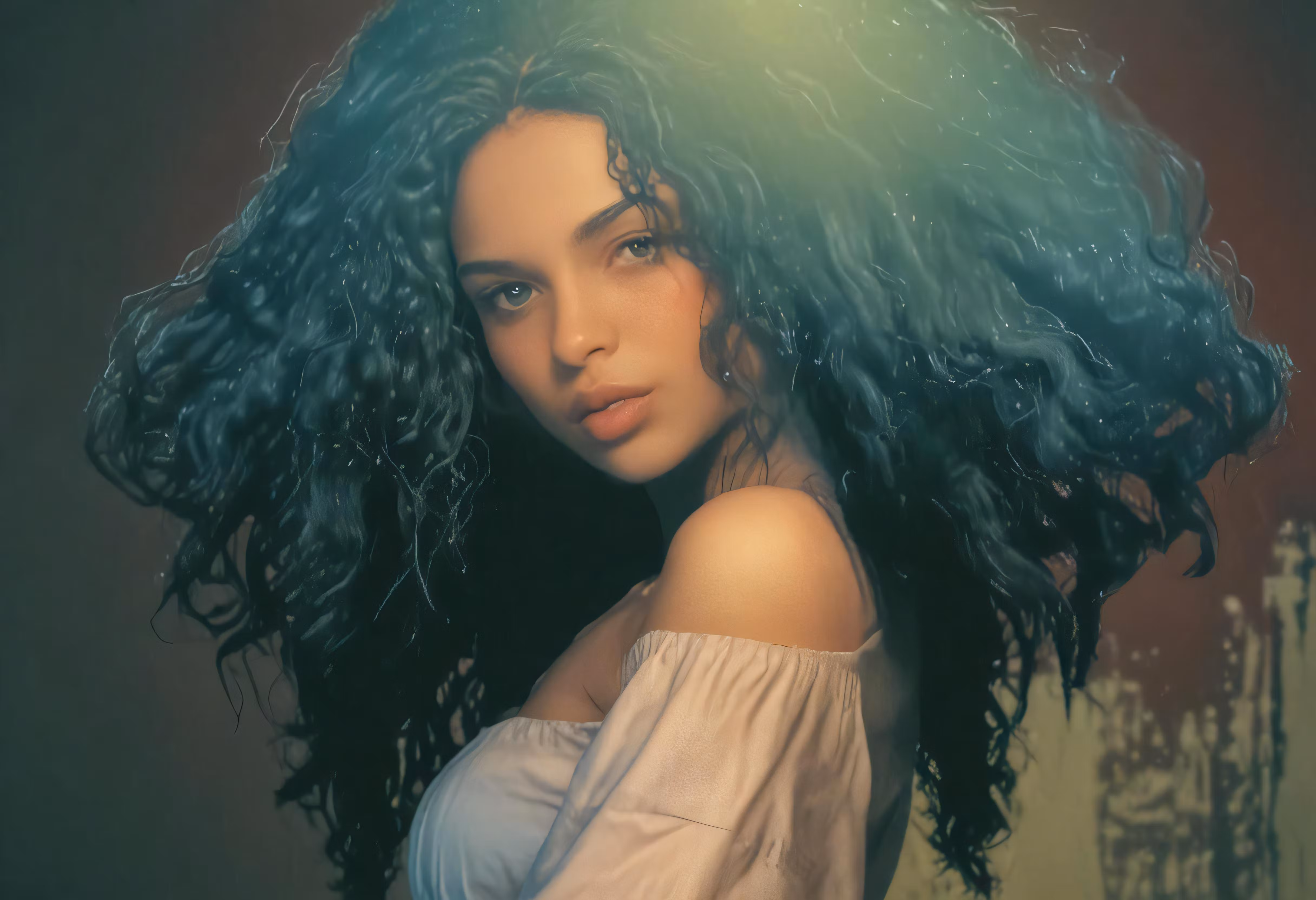 High resolution picture, free to use, the official logo for the 50 /the portrait of a woman with curly hair