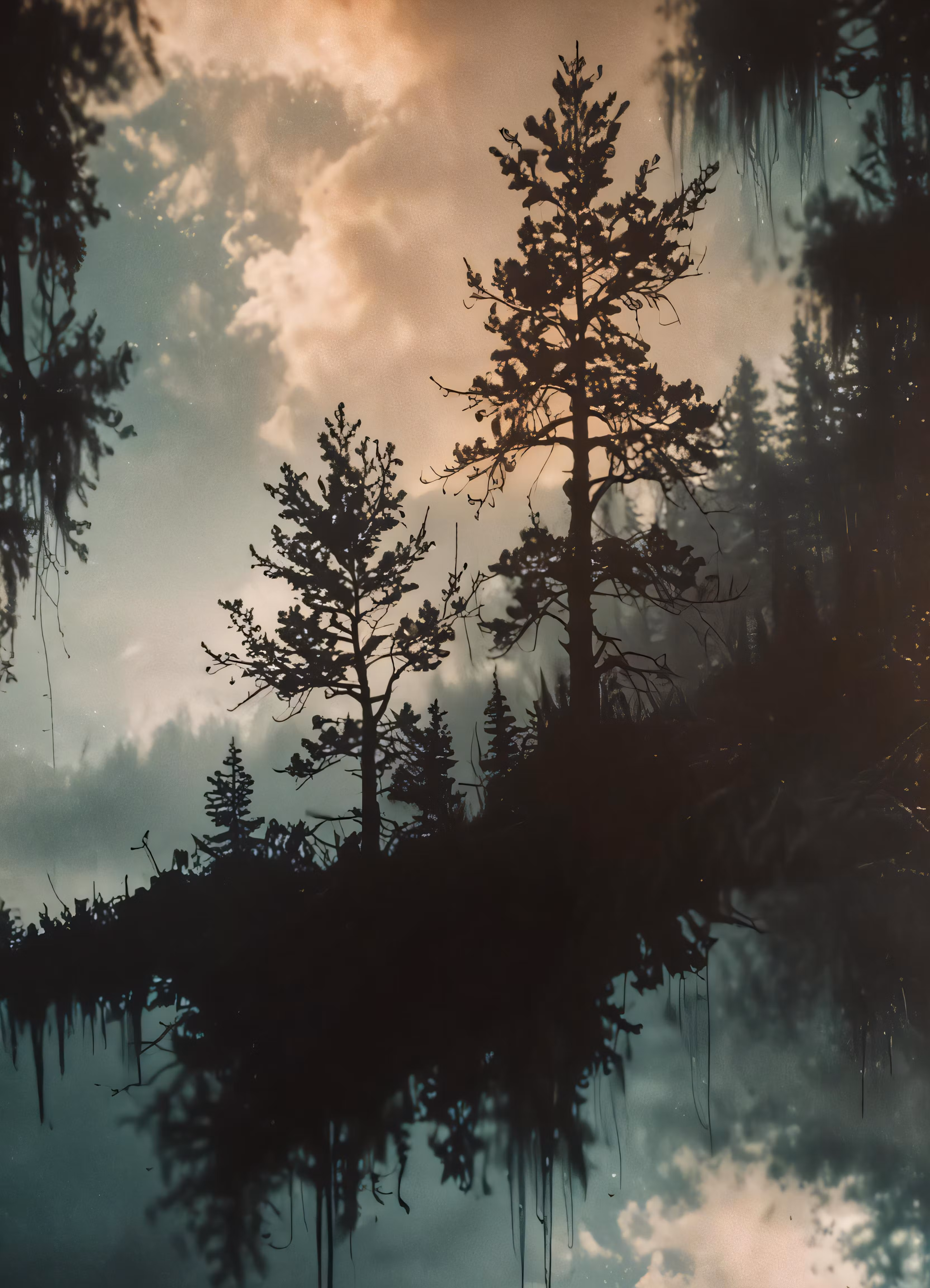 High resolution picture, free to use, the official logo for the 50 /the reflection of trees in a pond with cloudy sky