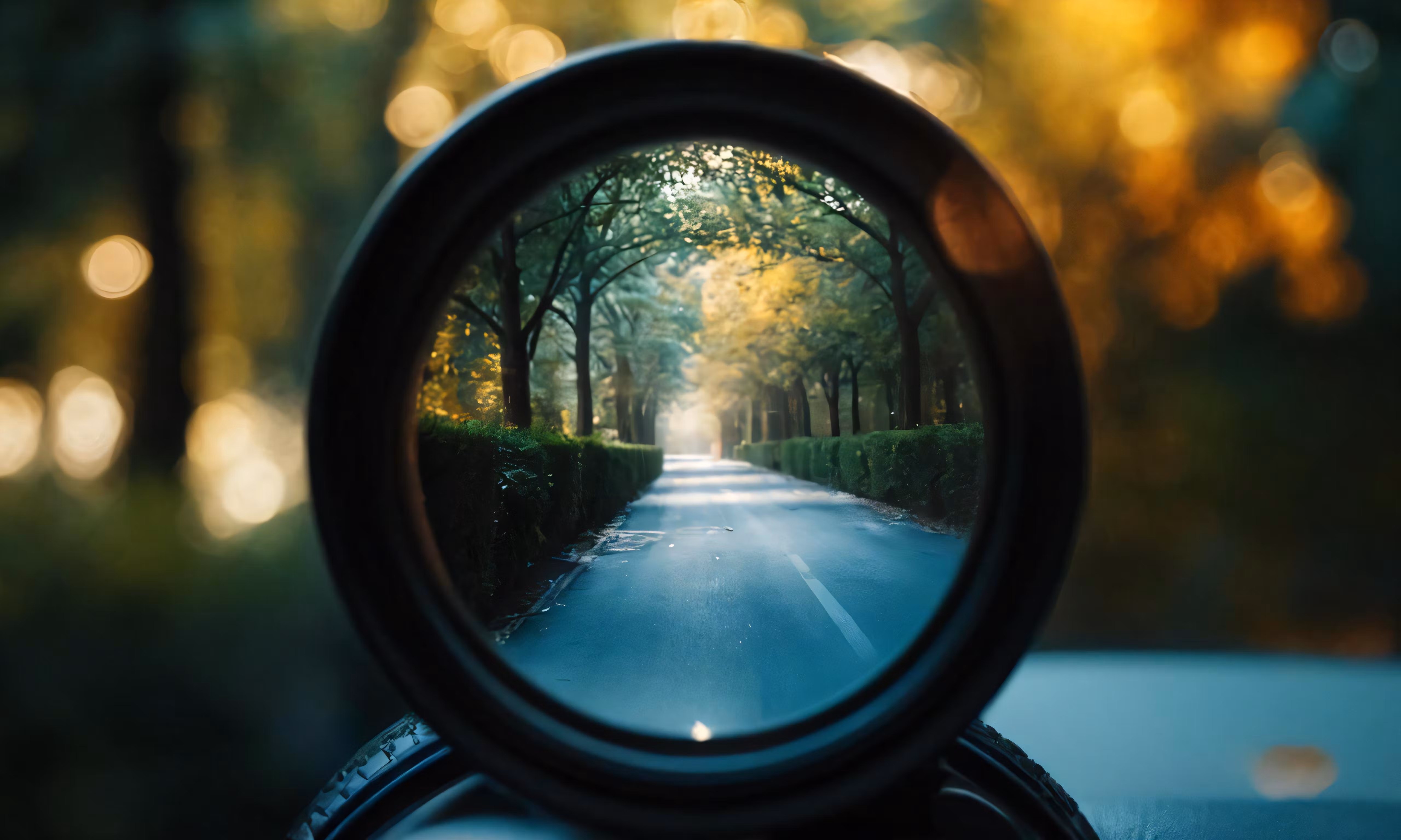 High resolution picture, free to use, the official logo for the 50 /the view of a rain covered road through a magnifying glass