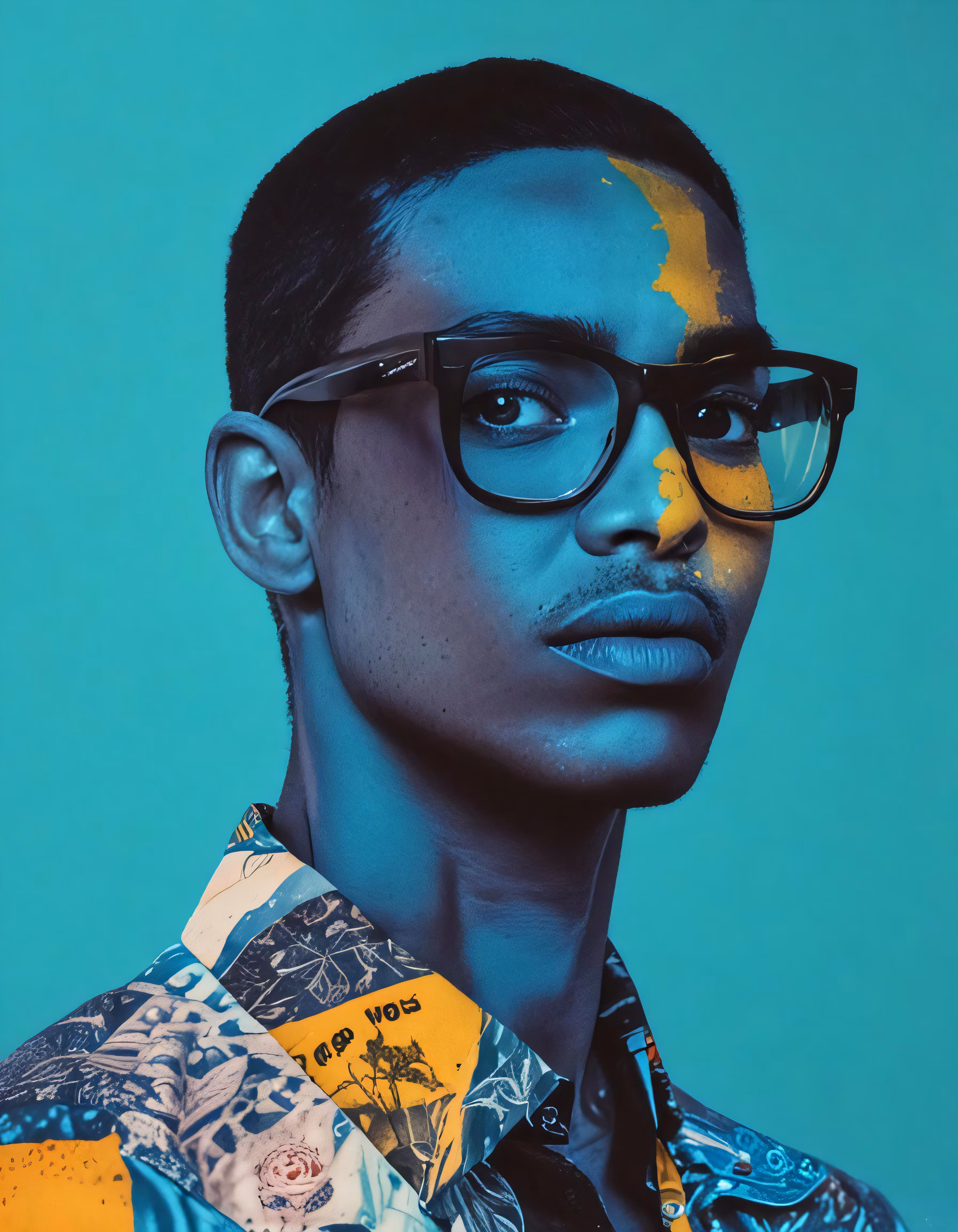 High resolution picture, free to use, the official logo for the 50 /the young man is wearing yellow paint on his face