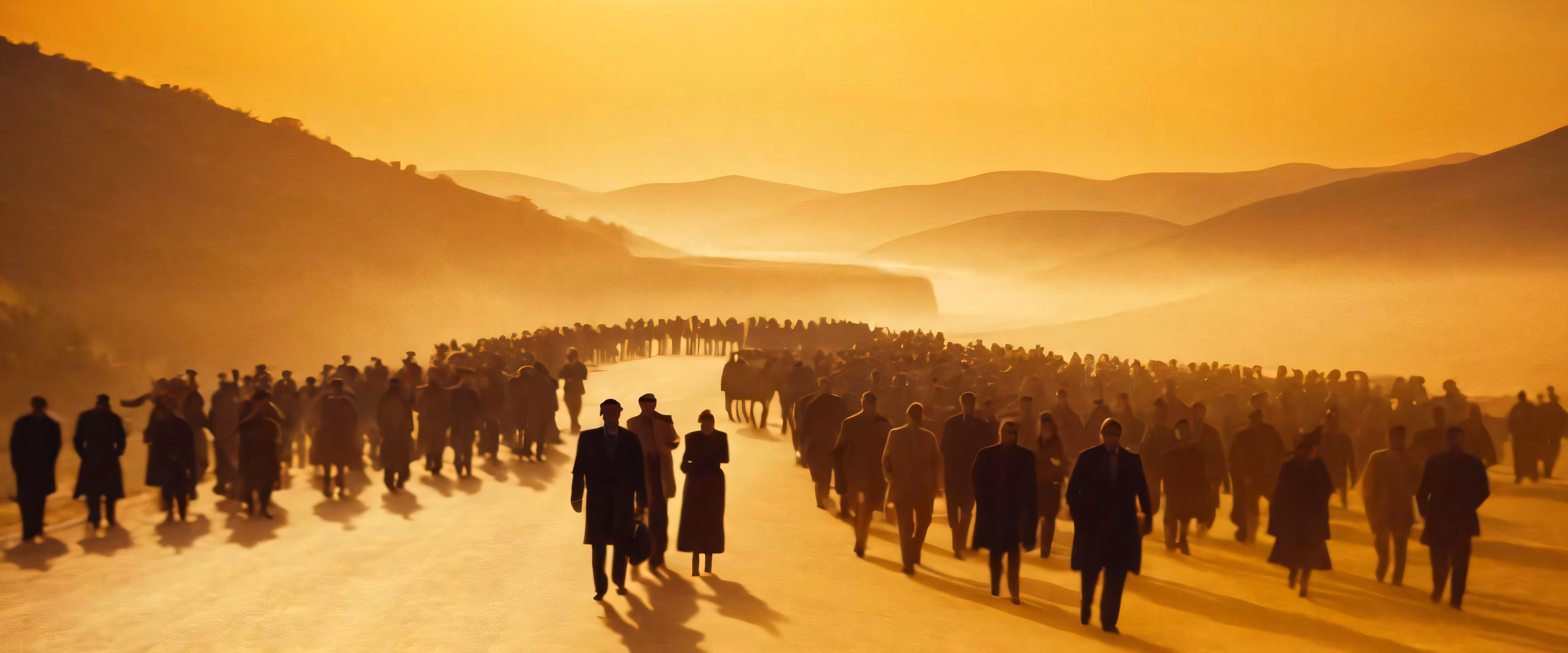 High resolution picture, free to use, the official logo for the 50 /there are people walking along the dirt road